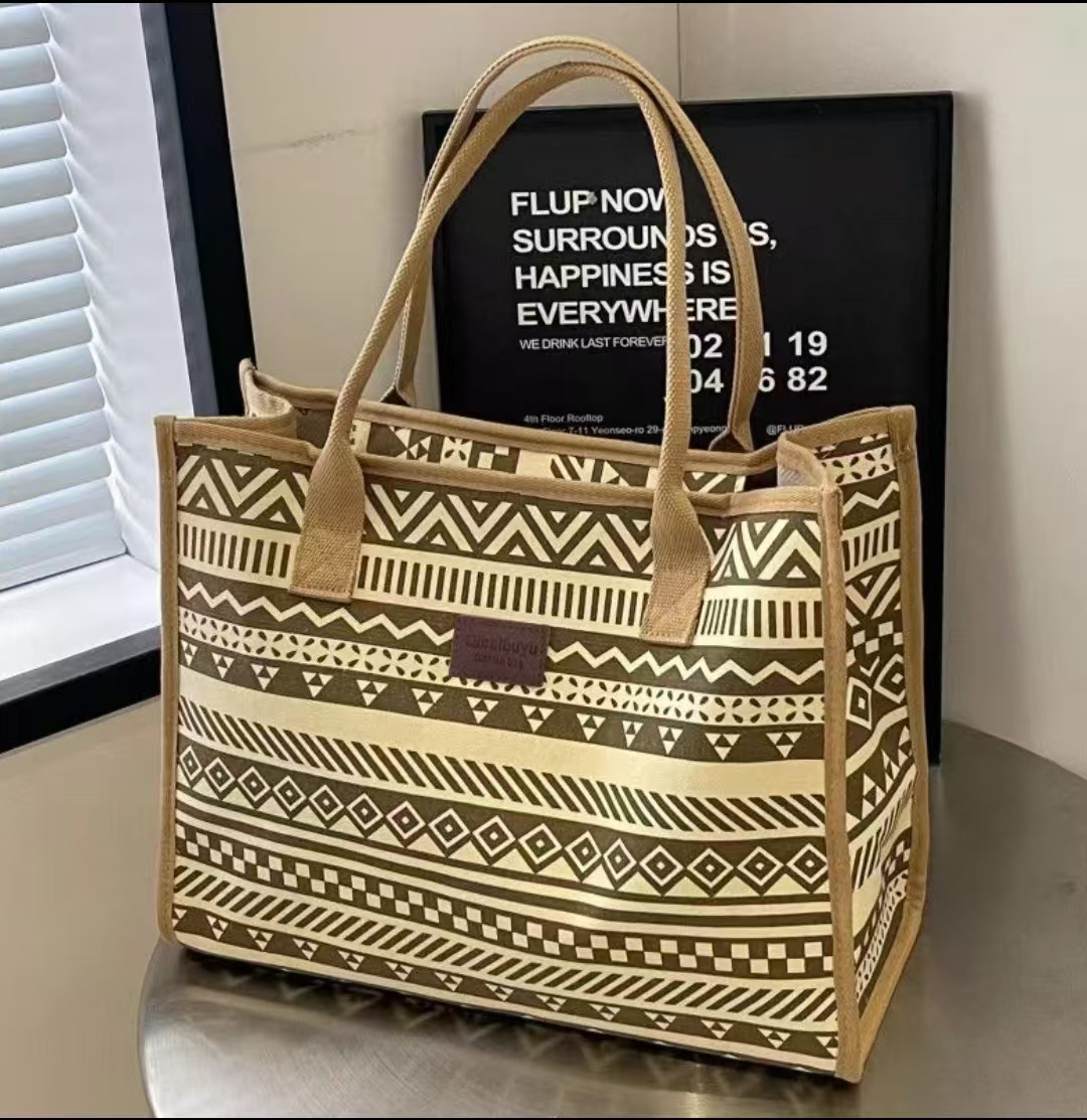 빈티지 민족 스타일 대용량 캔버스 토트 백 작업 통근 여성 가방 실용적인 미라 가방 손으로 어깨 가방