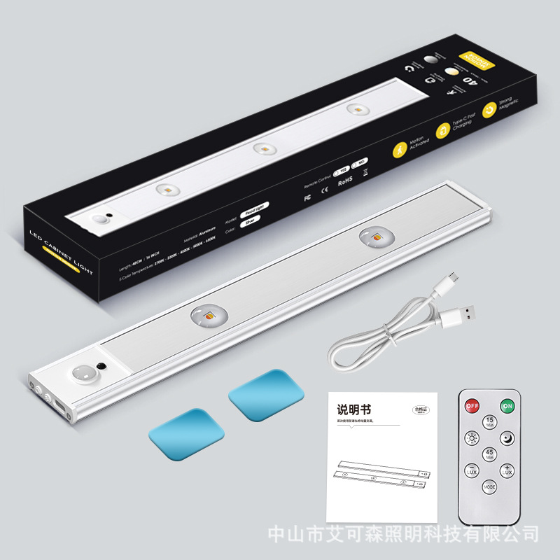跨境智能人体感应灯 充电led长条自粘衣柜灯带橱柜酒柜磁吸灯条