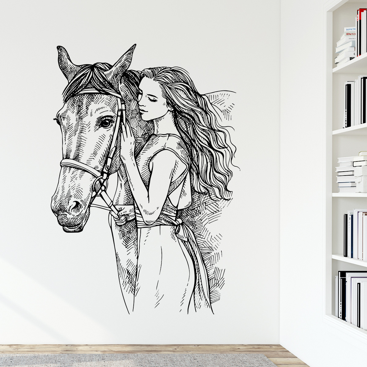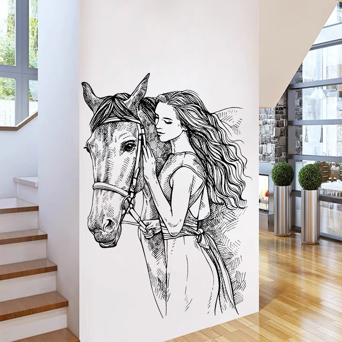 만화 창조적 인 손으로 그린 말 아름다움 자기 접착 벽 스티커 Ins 아트 스타일 방 거실 장식 스티커 ZN3009H스토어 가기
