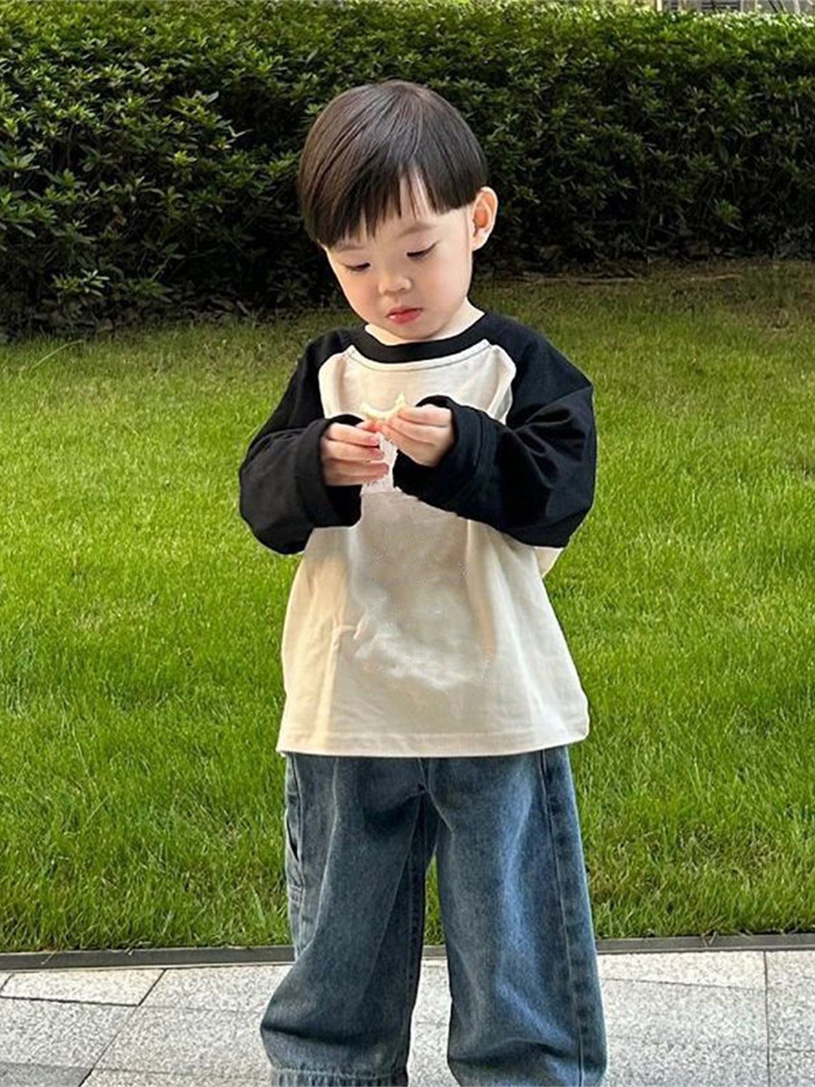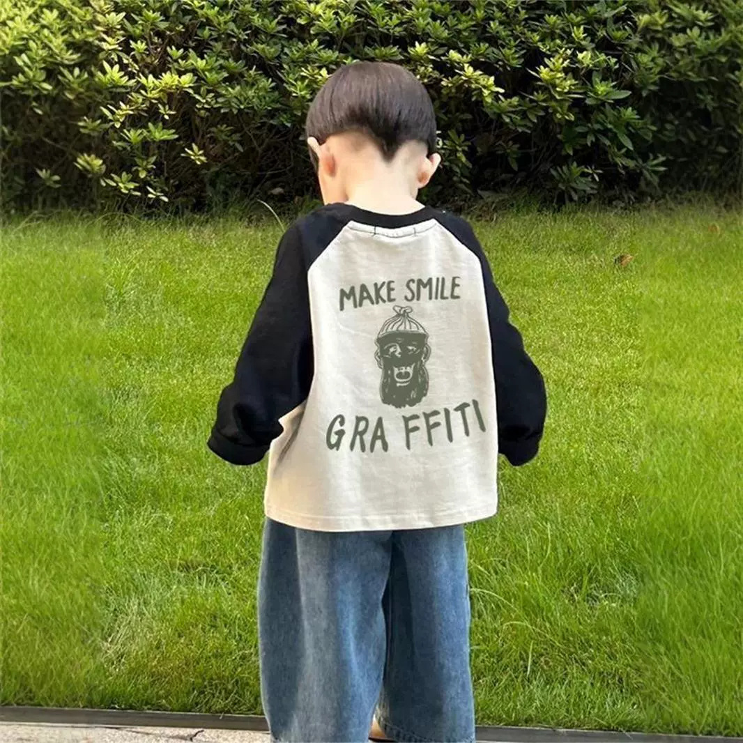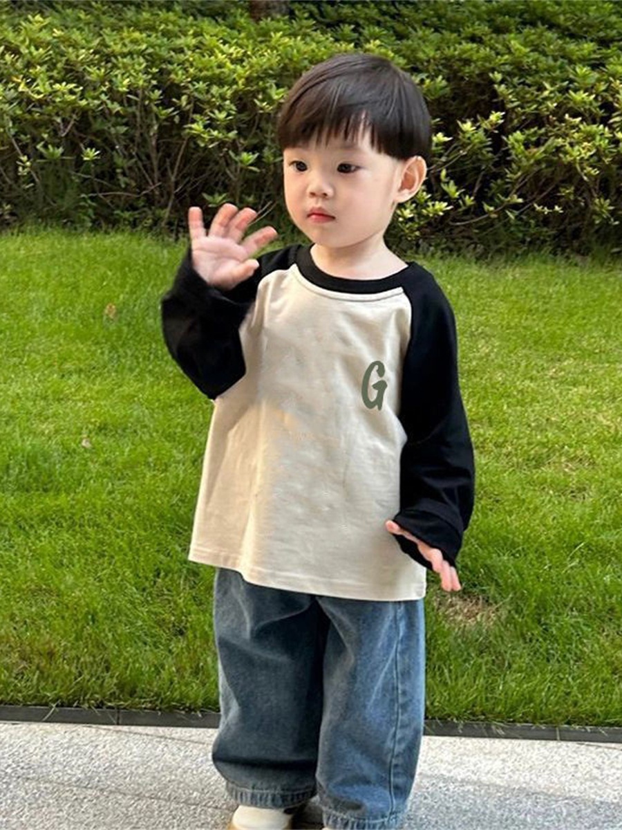 남자들의 긴 소매 티셔츠 2024 가을 새 어린이 더피 핸섬 베이스 셔츠 아기의 봄과 가을 만화 톱 T