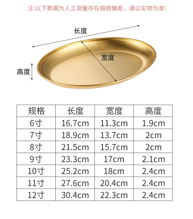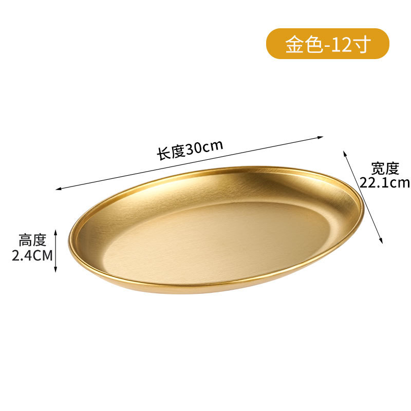 두꺼운 스테인리스 한국식 타원형 접시, 금도금 바비큐 접시, 생선찜 접시, 창의적인 레스토랑 트레이, 스낵 접시스토어 가기