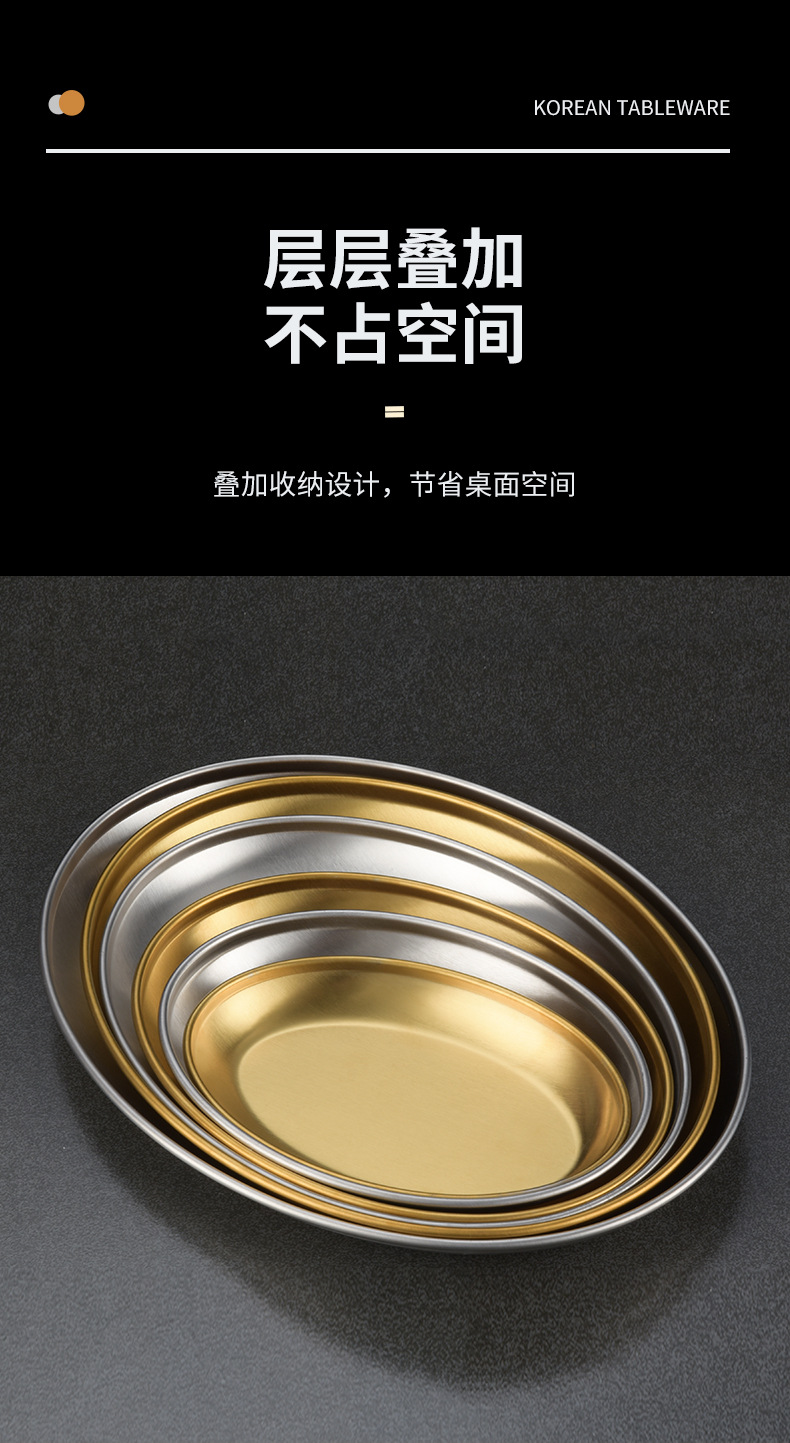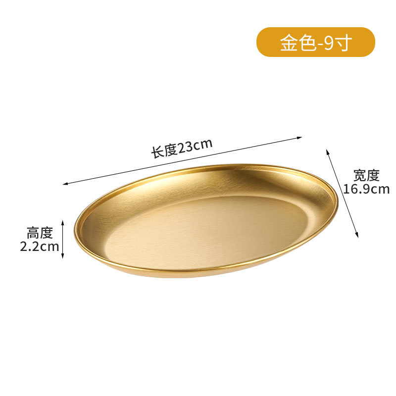두꺼운 스테인리스 한국식 타원형 접시, 금도금 바비큐 접시, 생선찜 접시, 창의적인 레스토랑 트레이, 스낵 접시