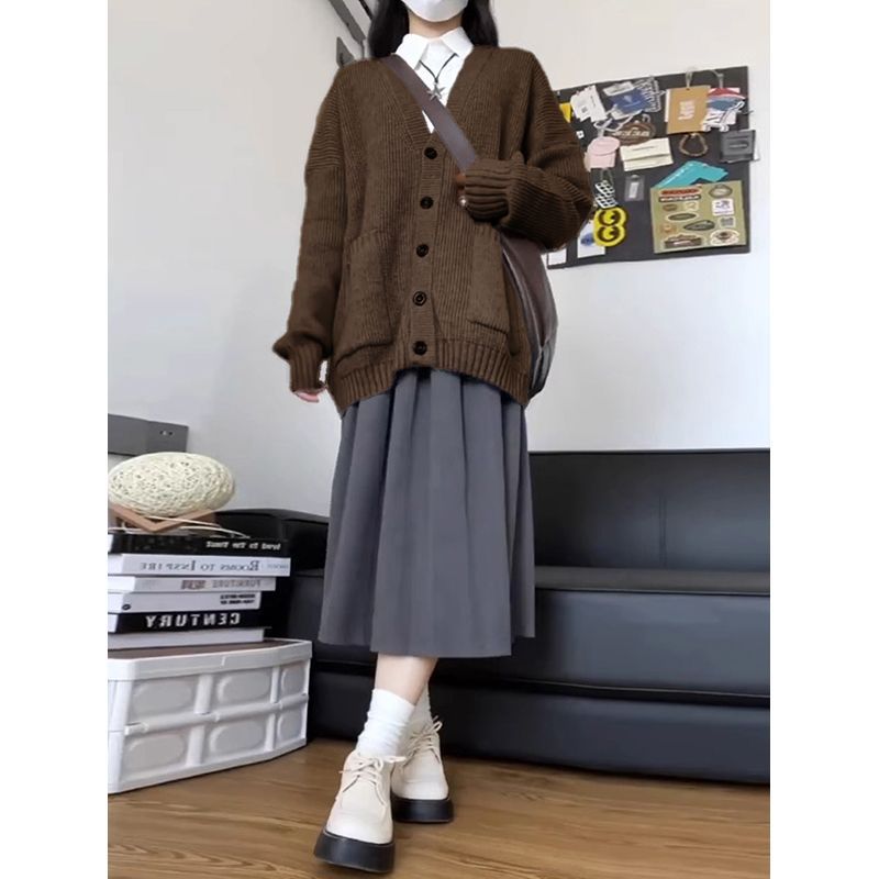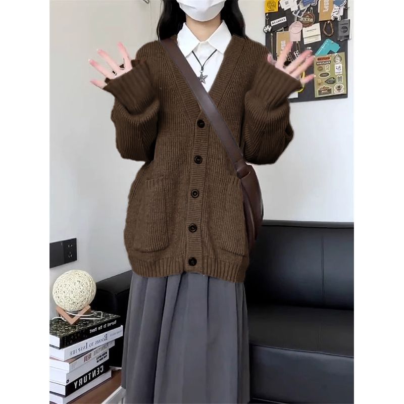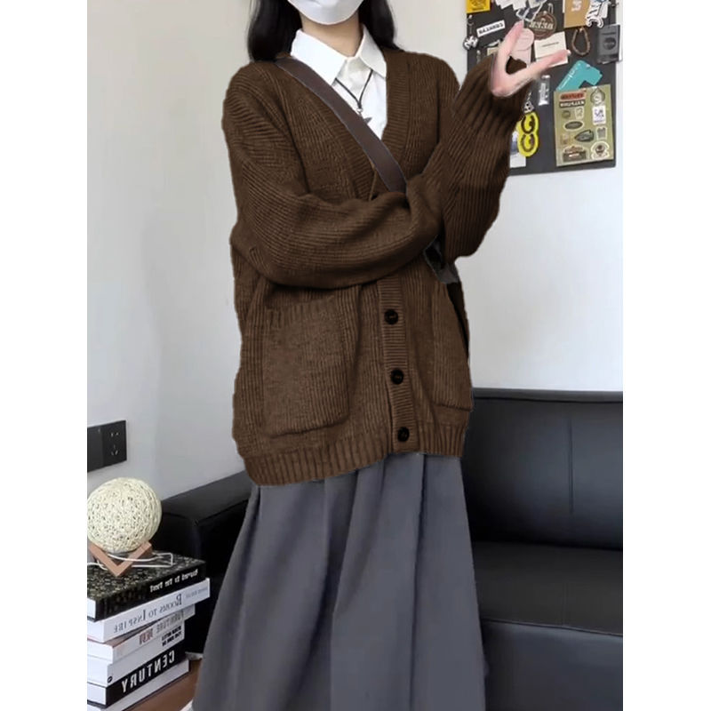 여자 카디건 스웨터 코트 가을 2024 새로운 마일라드웨어 유행 간단한 올 매치 니트 탑스토어 가기
