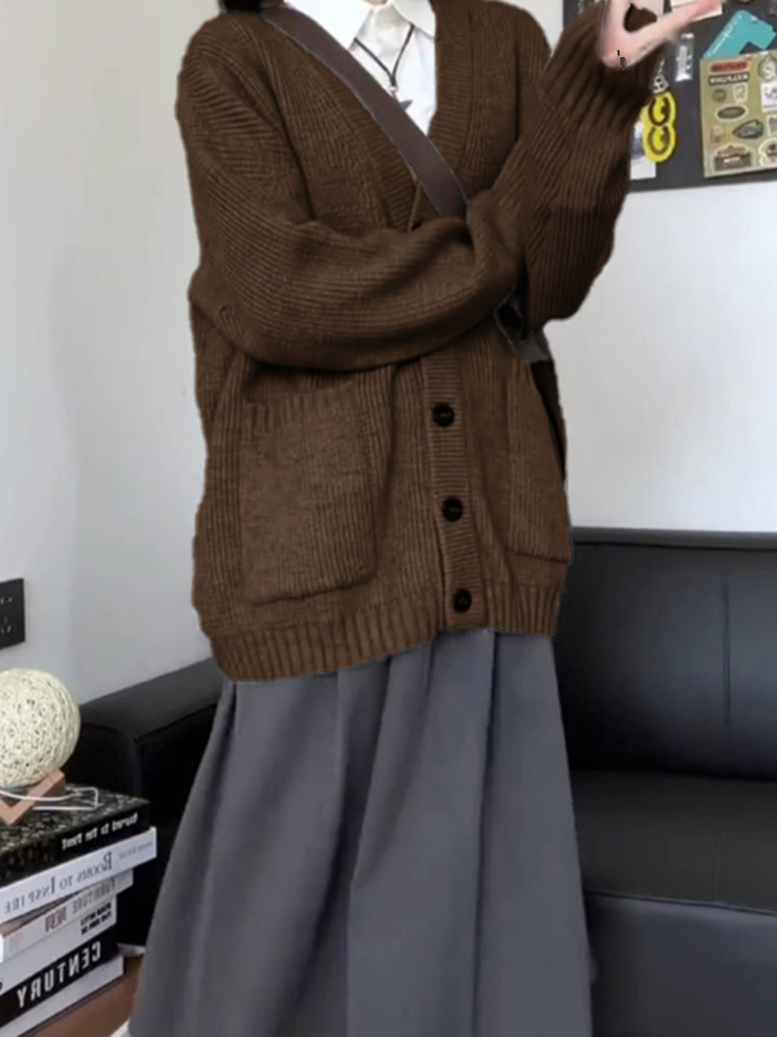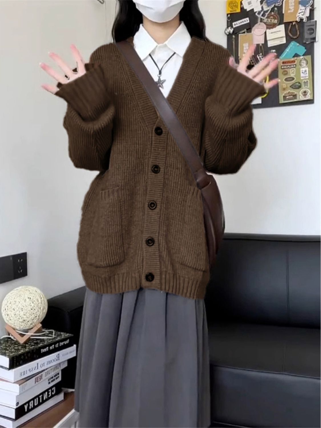 여자 카디건 스웨터 코트 가을 2024 새로운 마일라드웨어 유행 간단한 올 매치 니트 탑