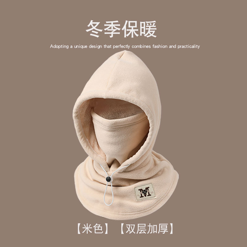 모자 겨울 남자와 여자의 풀오버 따뜻한 두꺼운 감기 방지 야외 승마 마스크 귀 보호 목 보호 벨벳과 통합 모자