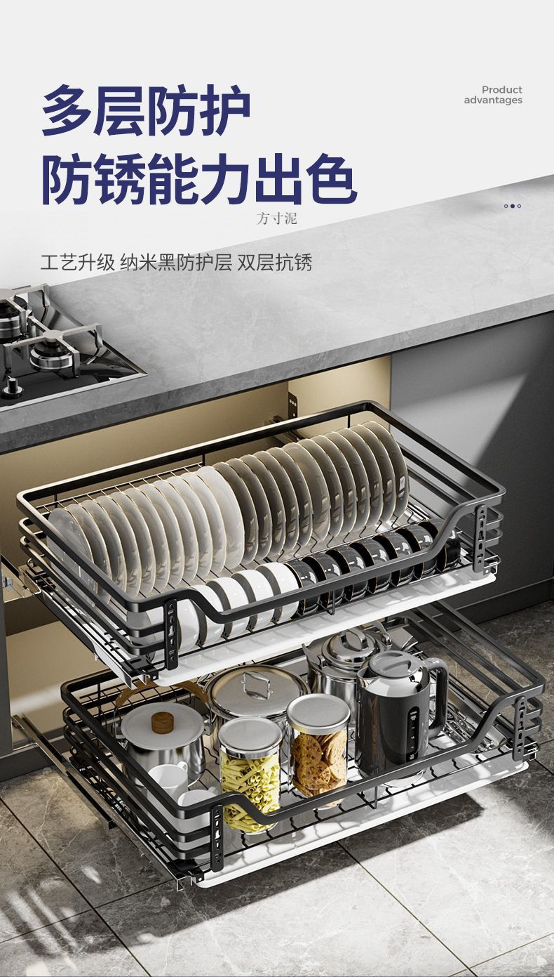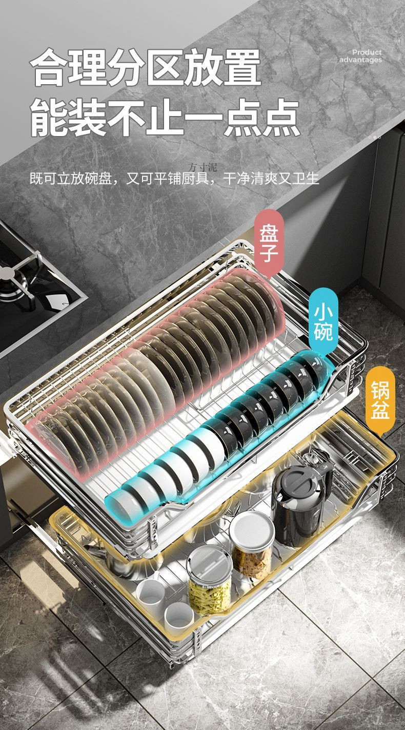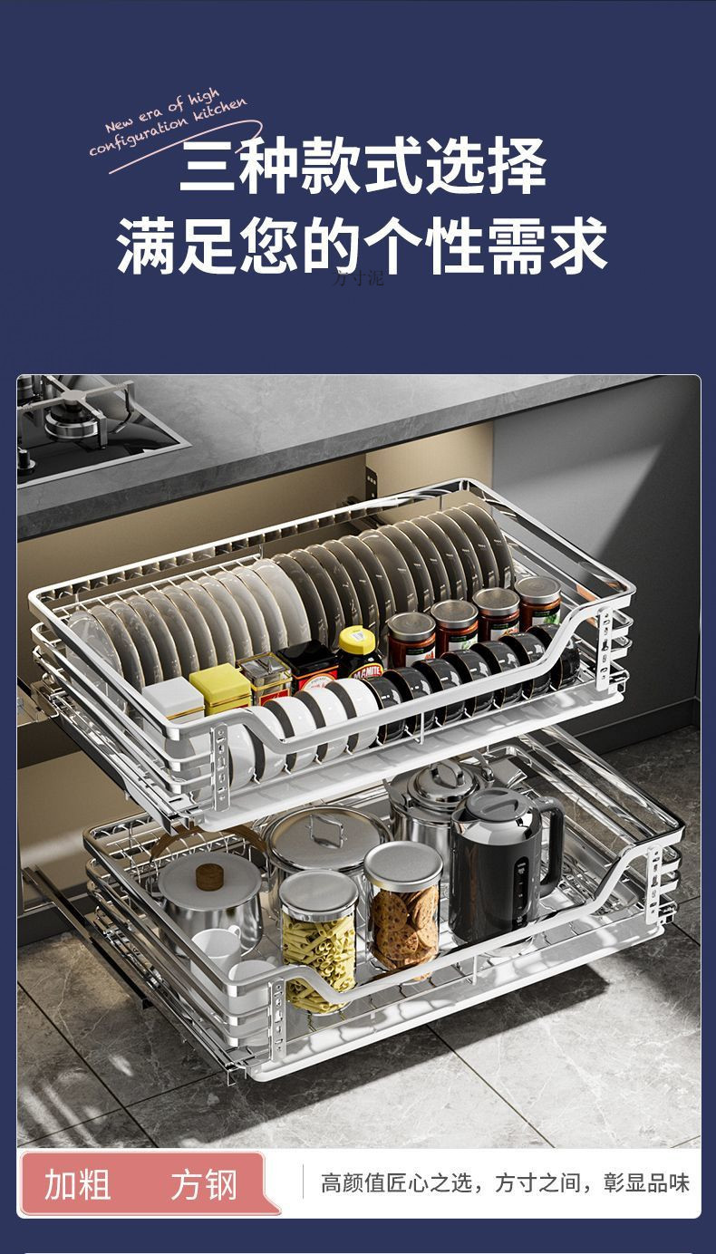 더블 레이어 304 스테인레스 스틸 바구니 캐비닛 서랍 접시 바구니 주방 접시 랙 버퍼 레일 보관 조미료 바구니