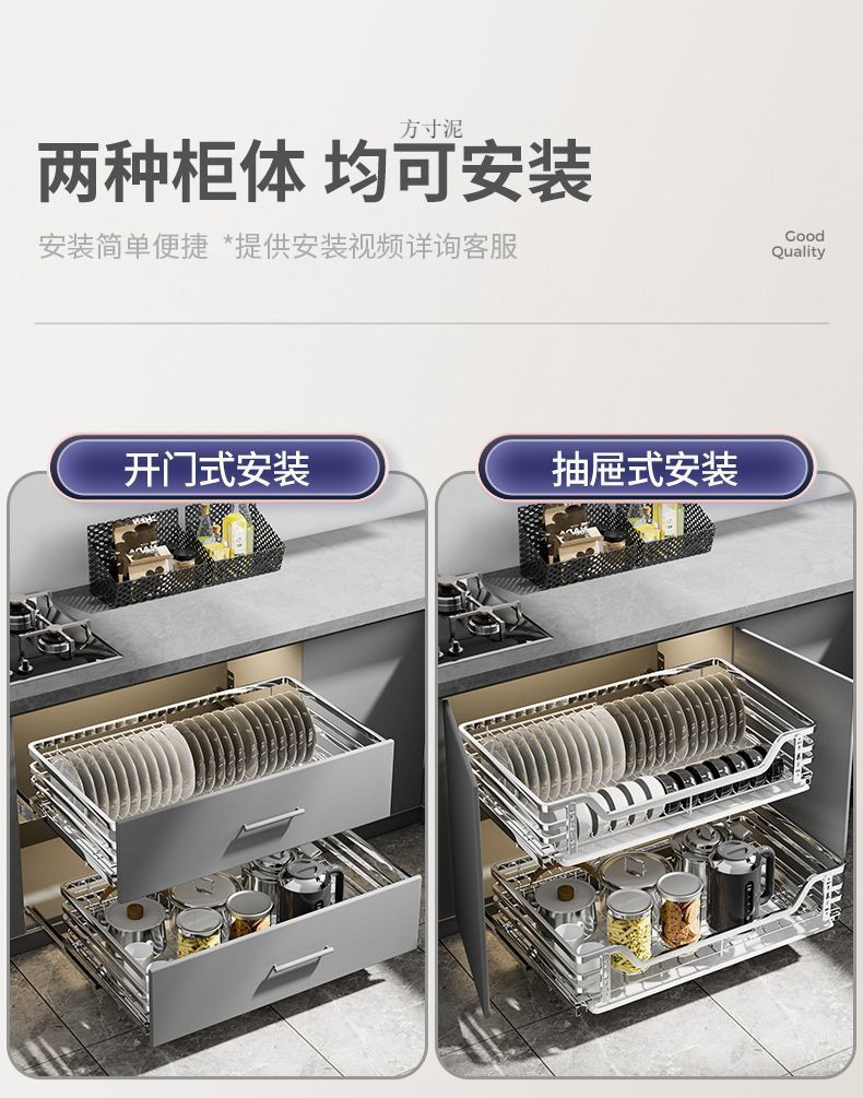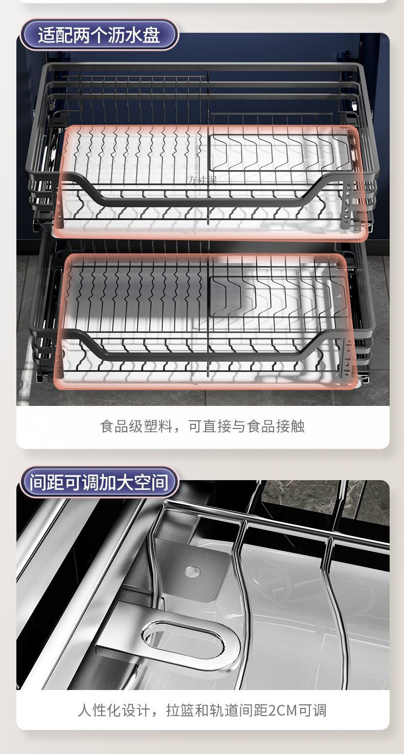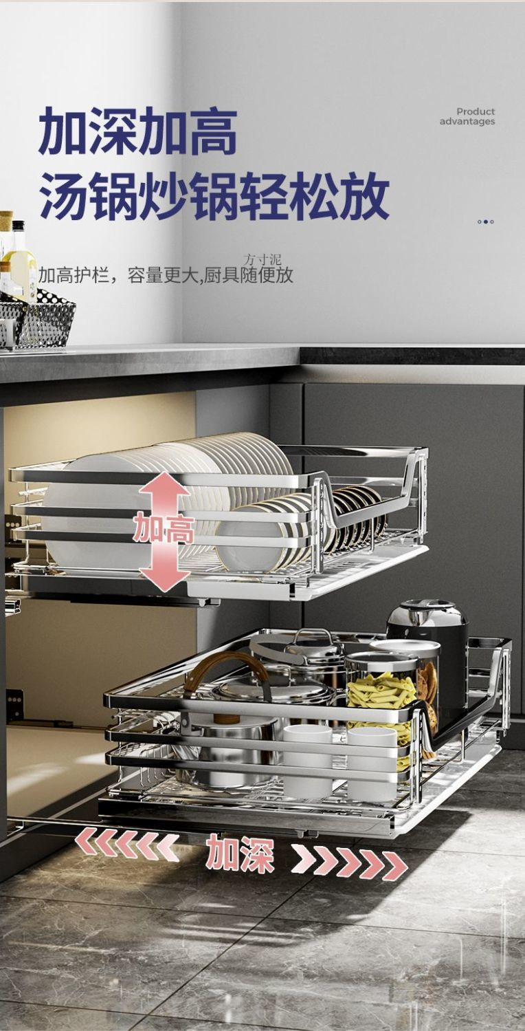 더블 레이어 304 스테인레스 스틸 바구니 캐비닛 서랍 접시 바구니 주방 접시 랙 버퍼 레일 보관 조미료 바구니