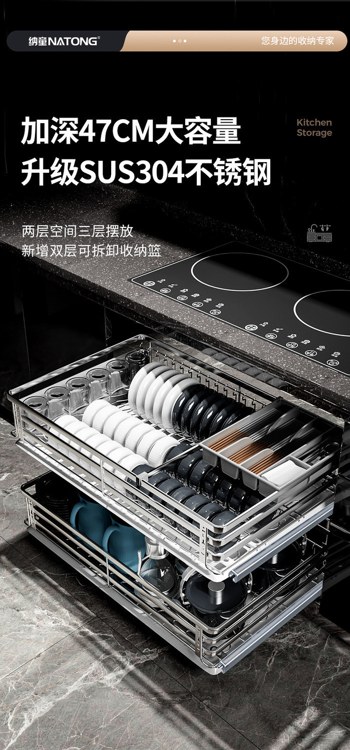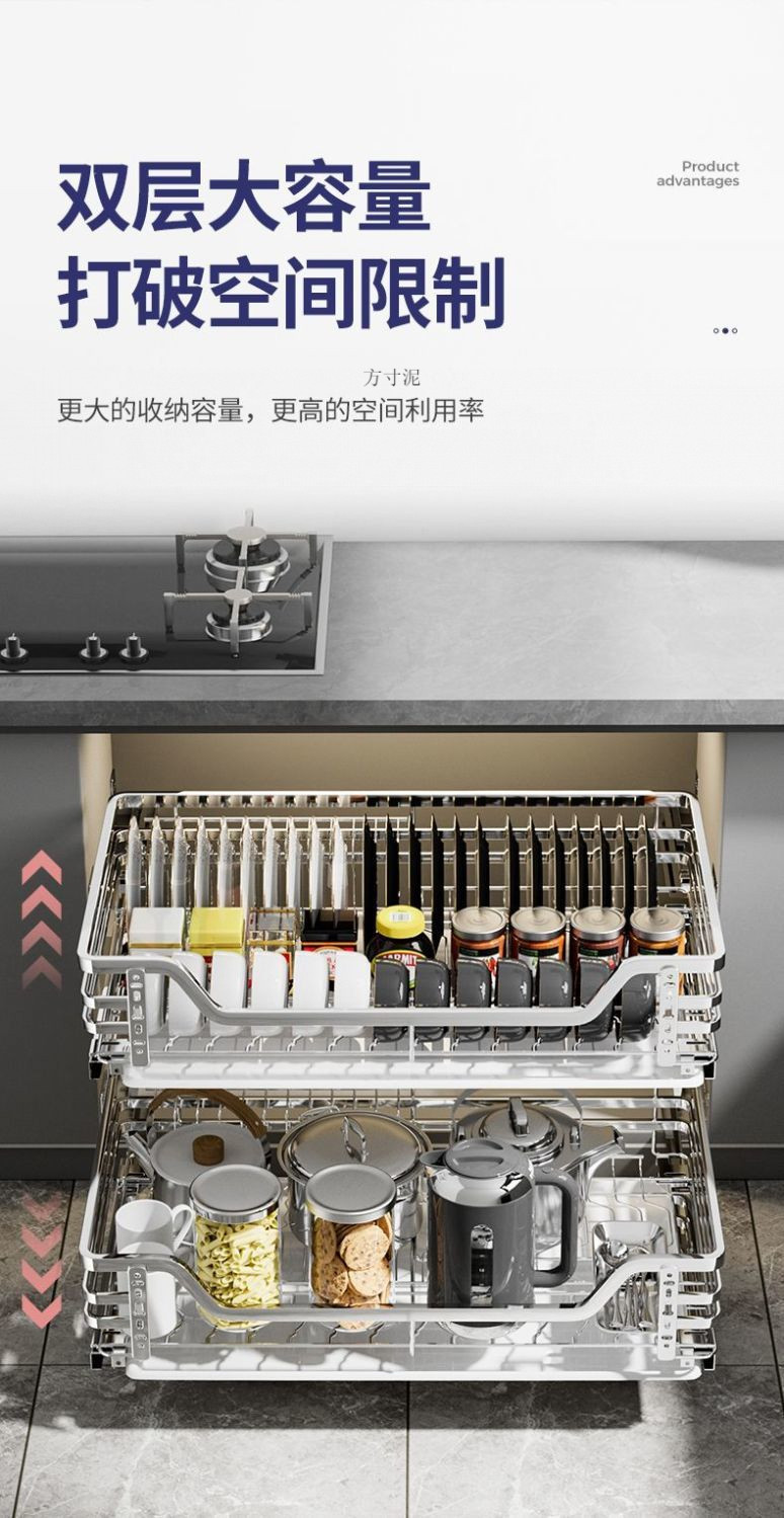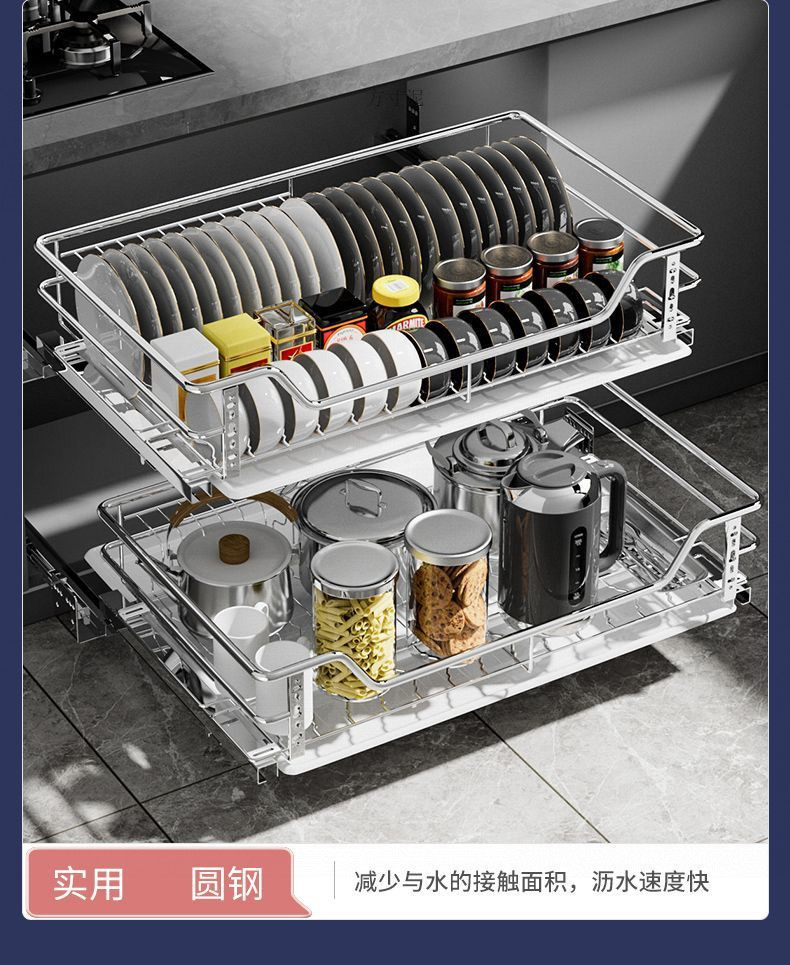 더블 레이어 304 스테인레스 스틸 바구니 캐비닛 서랍 접시 바구니 주방 접시 랙 버퍼 레일 보관 조미료 바구니스토어 가기