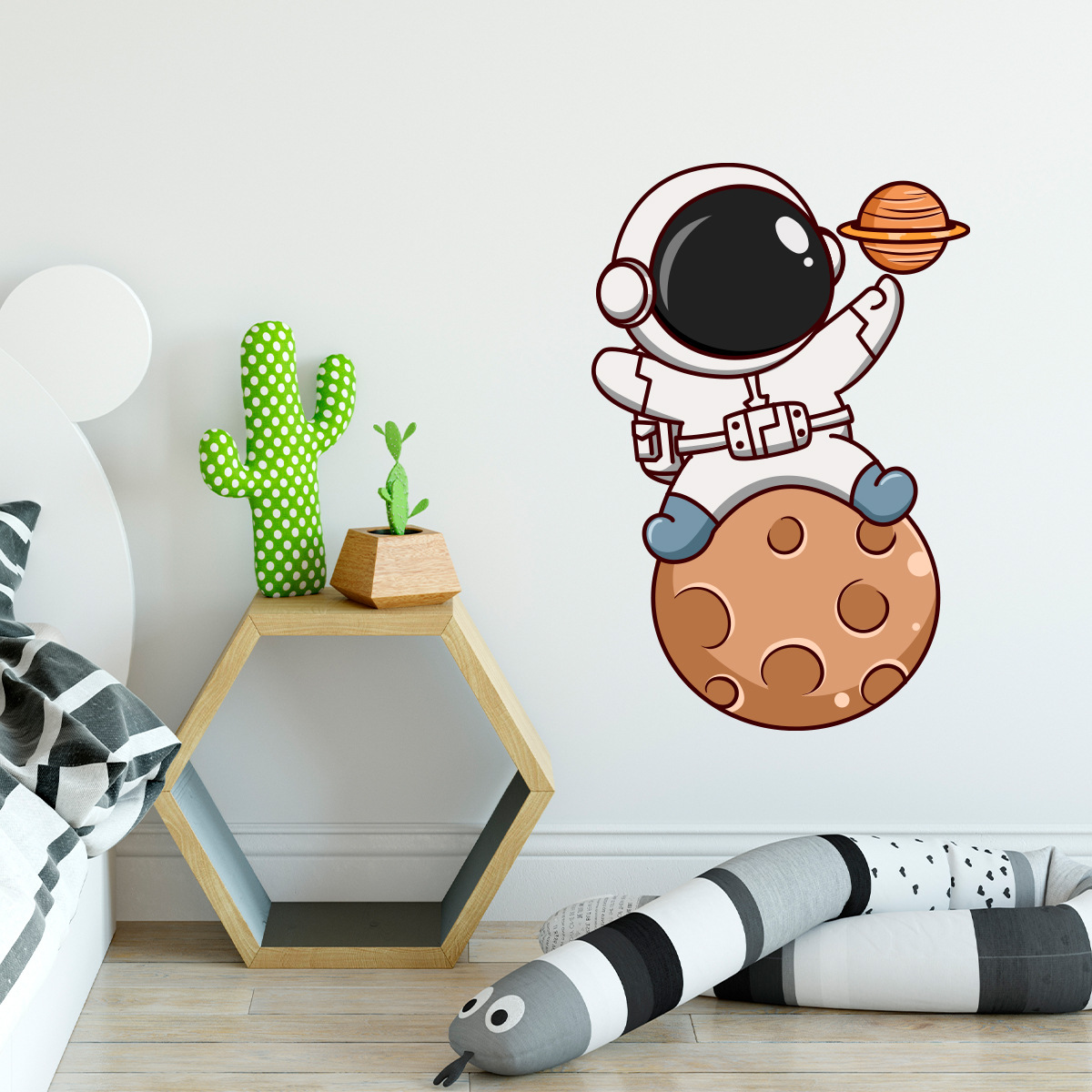 ZN3011Q 만화 행성 귀여운 우주비행사 셀프 접착 벽 스티커 침실 거실 변기 뚜껑 장식 스티커