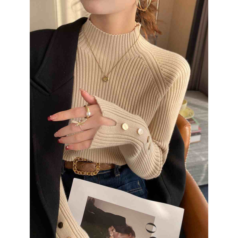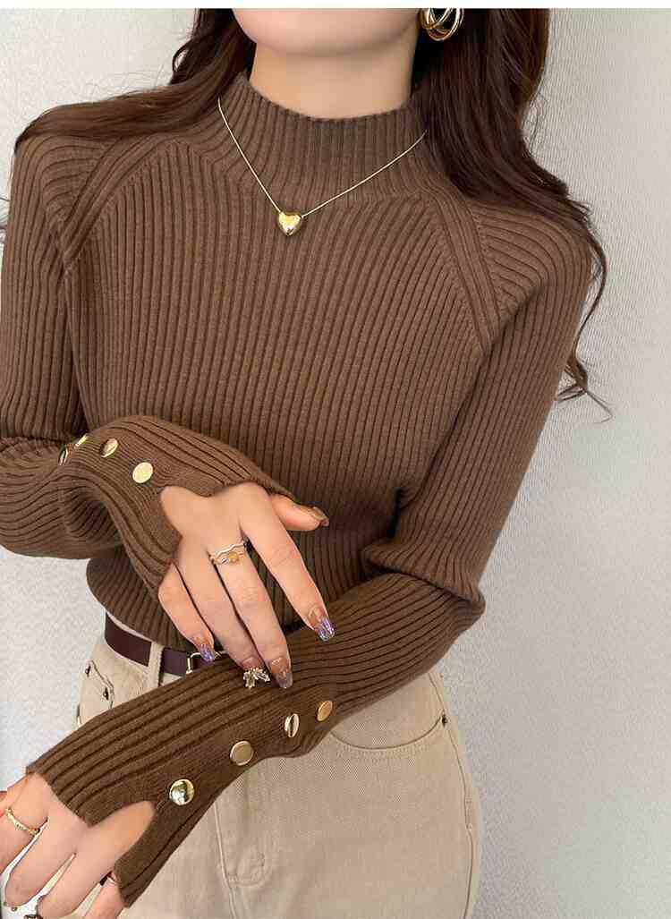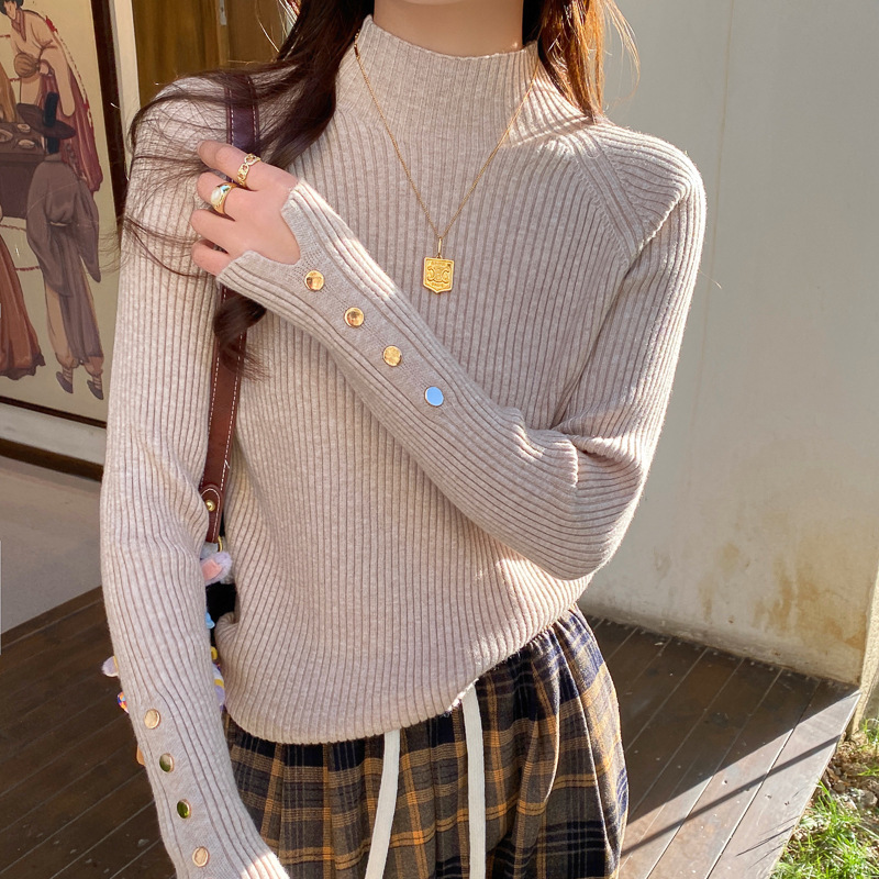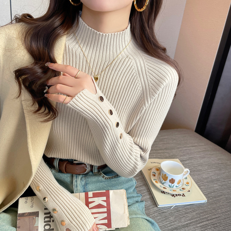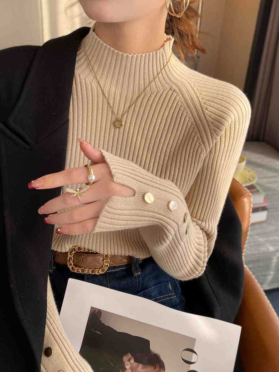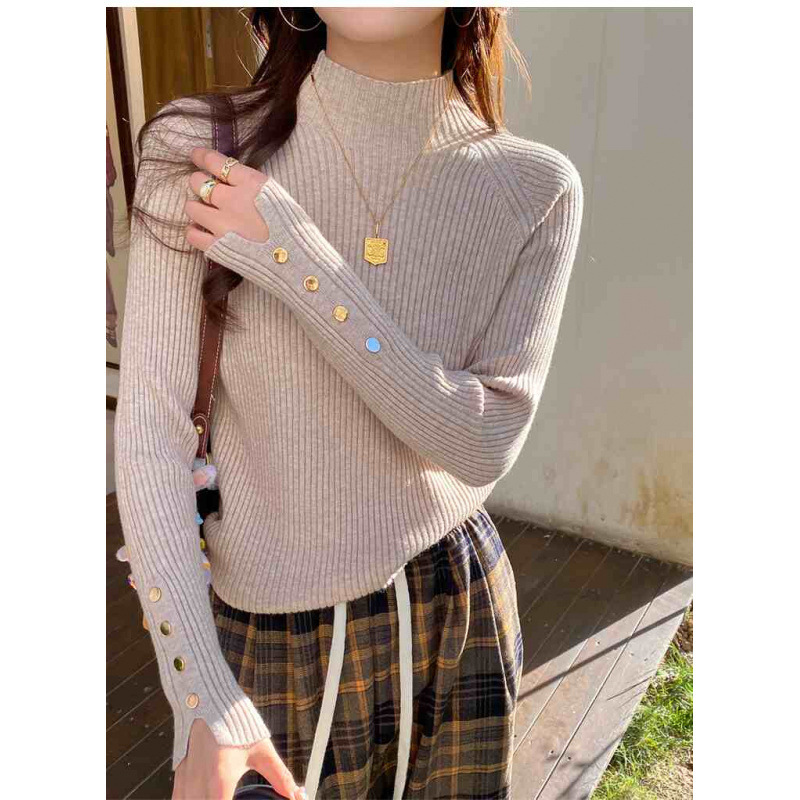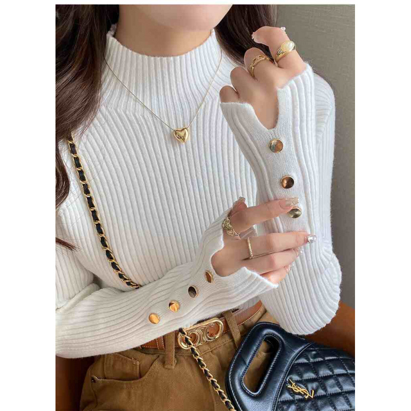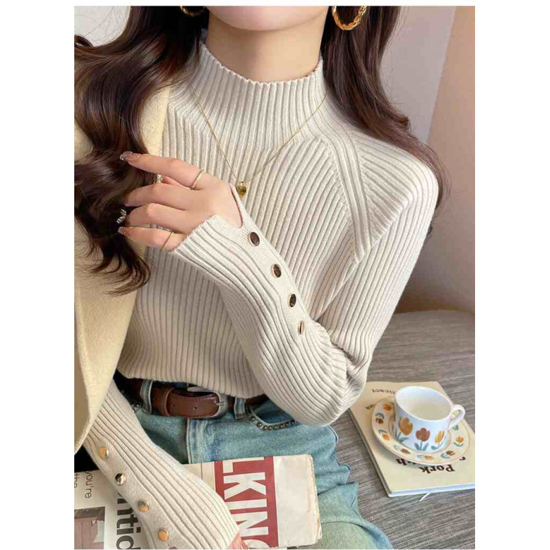 화이트 베이스 스웨터 여성의 2024 가을 및 겨울 새로운 하이 엔드 웨스턴 스타일 하프 터틀넥 스웨터, 긴 소매 탑