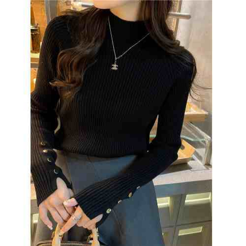 화이트 베이스 스웨터 여성의 2024 가을 및 겨울 새로운 하이 엔드 웨스턴 스타일 하프 터틀넥 스웨터, 긴 소매 탑스토어 가기
