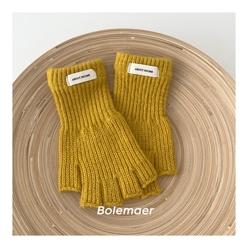 어린이 장갑 겨울 따뜻한 반 손가락 간단한 단색 니트 장갑 소년 소녀스토어 가기