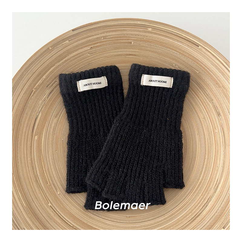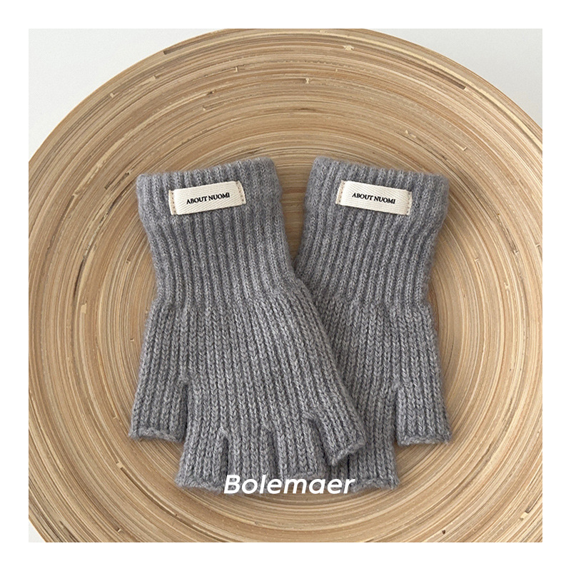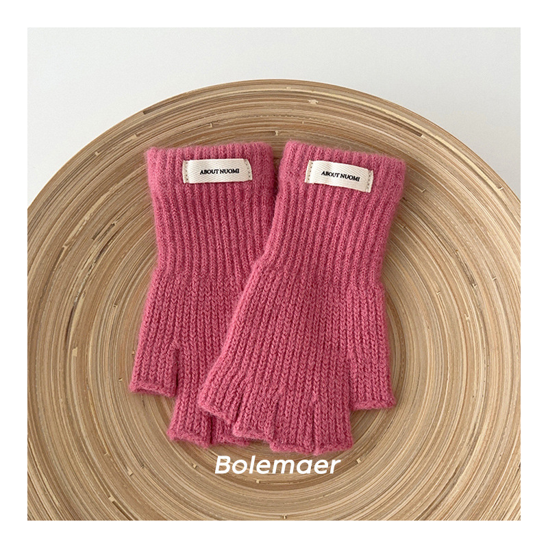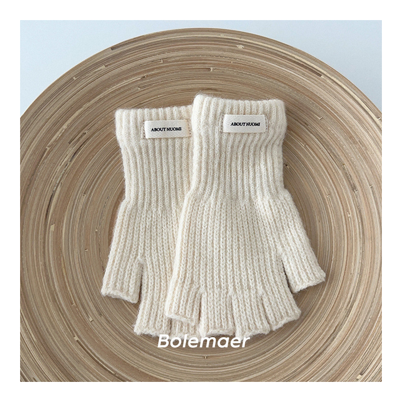 어린이 장갑 겨울 따뜻한 반 손가락 간단한 단색 니트 장갑 소년 소녀