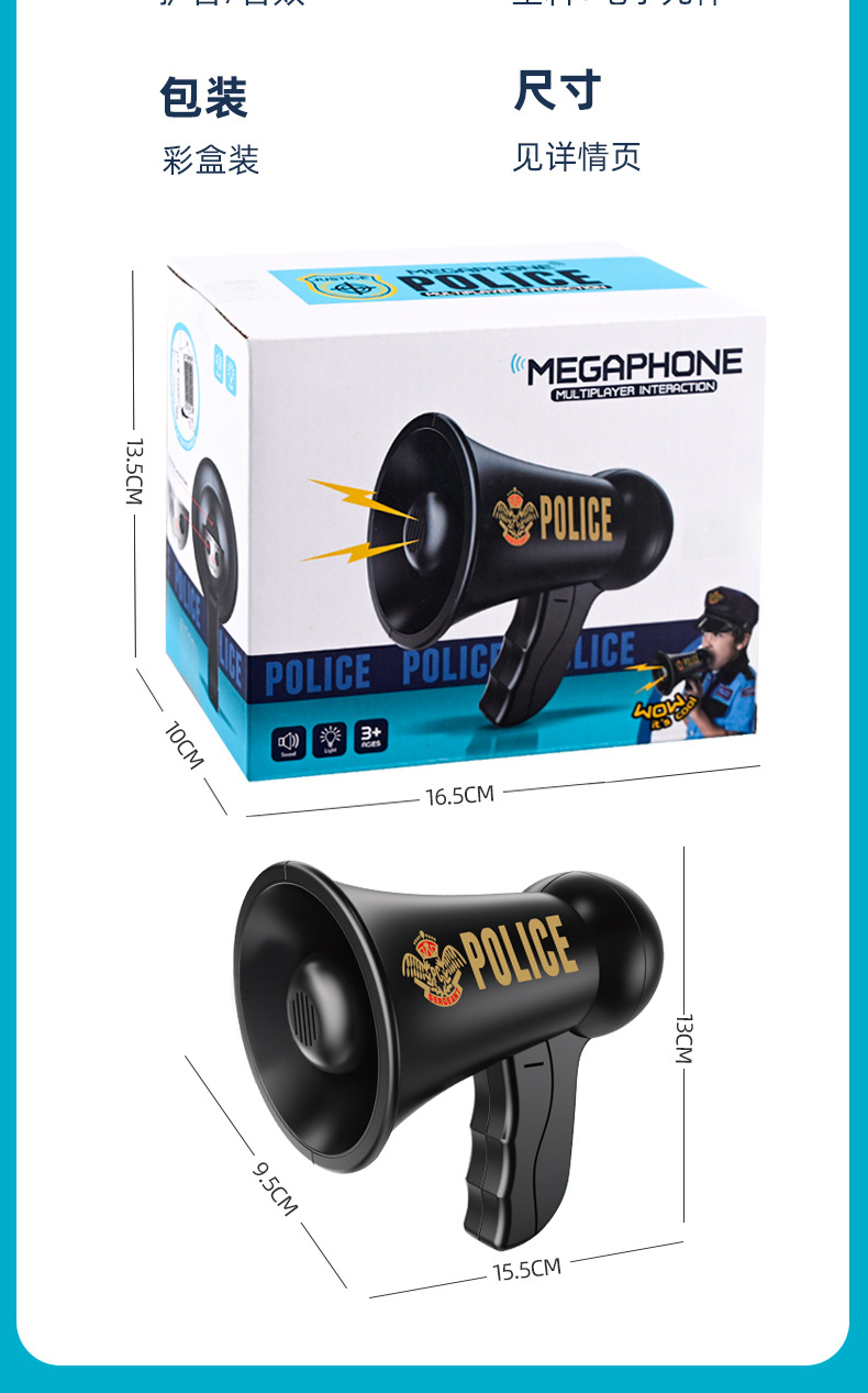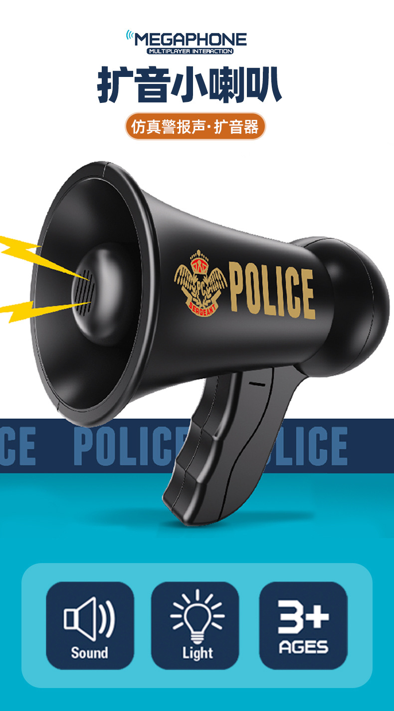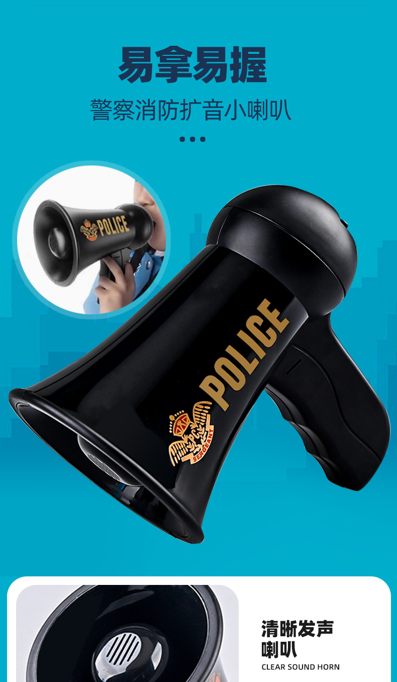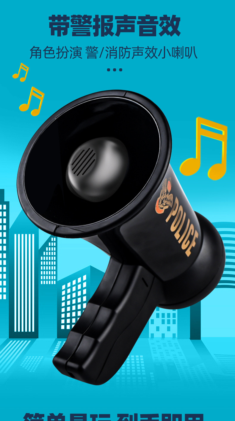 어린이 장난감 경찰 확성기 롤 플레잉 사이렌 음향 효과 경찰 확성기 놀이 집 게임 소품