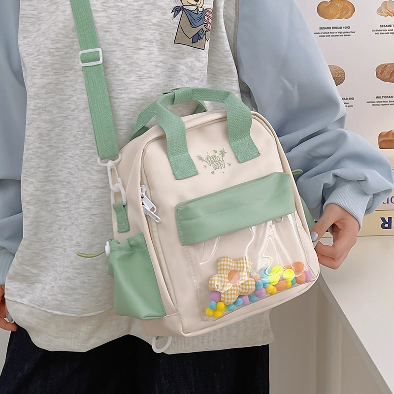 일본 스타일 귀여운 소녀의 통증 가방 새로운 PVC 투명 창 학생 스쿨백 다기능 어깨 크로스 바디 백