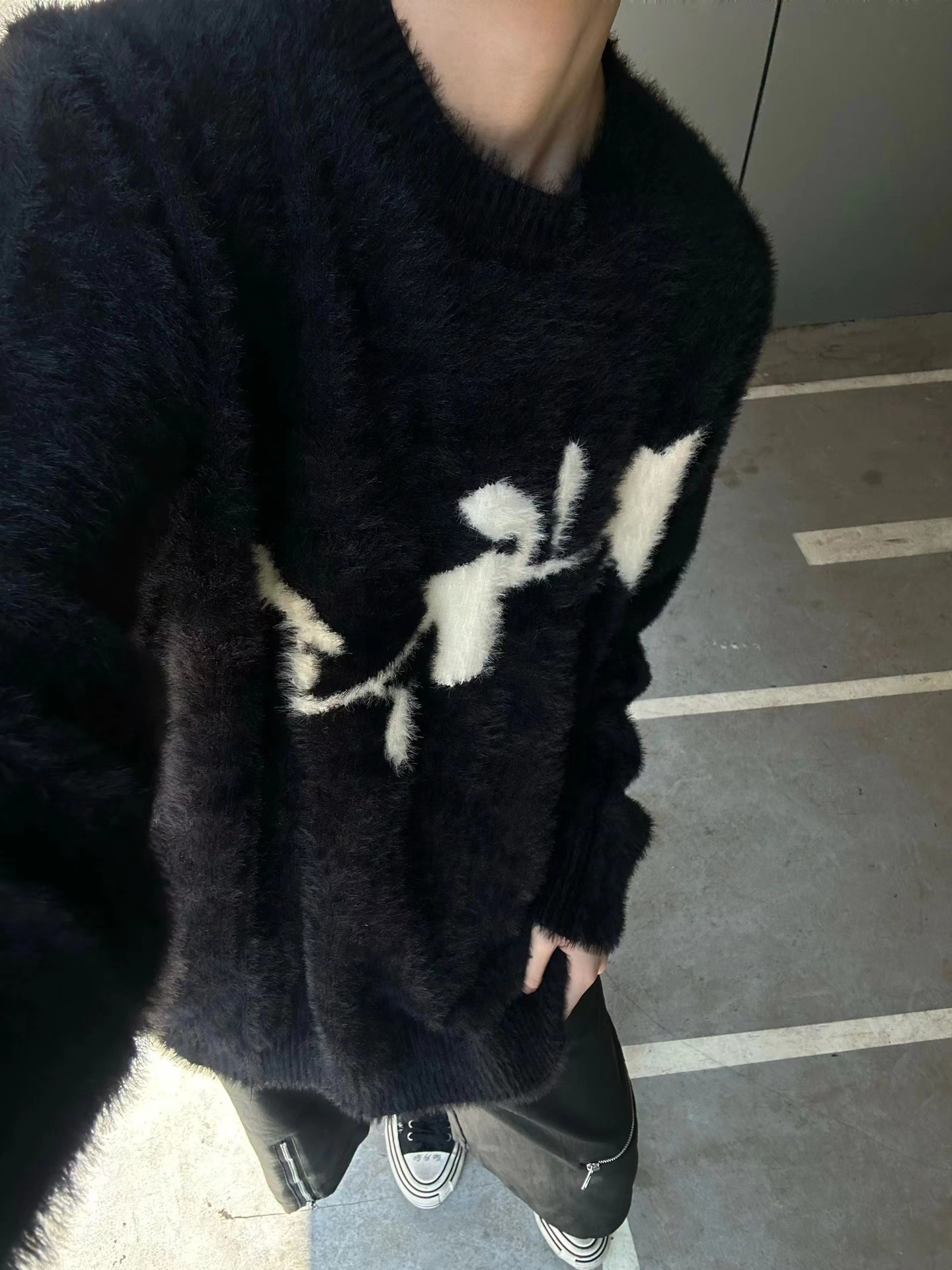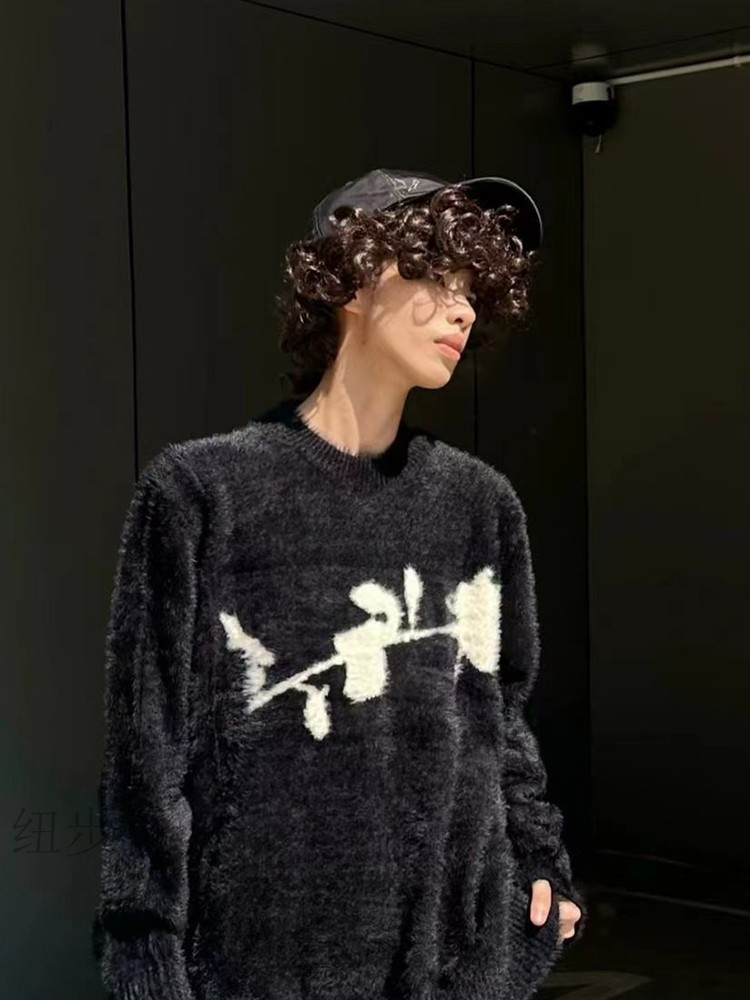 미국 루스 레트로 겨울 기모 대형 로즈 틈새 커플 캐주얼 니트 셔츠 캐주얼 스웨터