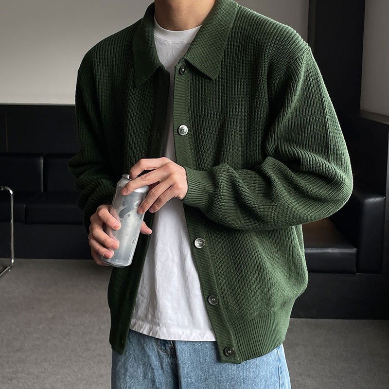 초가을 다크 그린 옷깃 스웨터 카디건 코트 남성스웨터 한국 남성 패션 캐주얼 한국 동대문스토어 가기