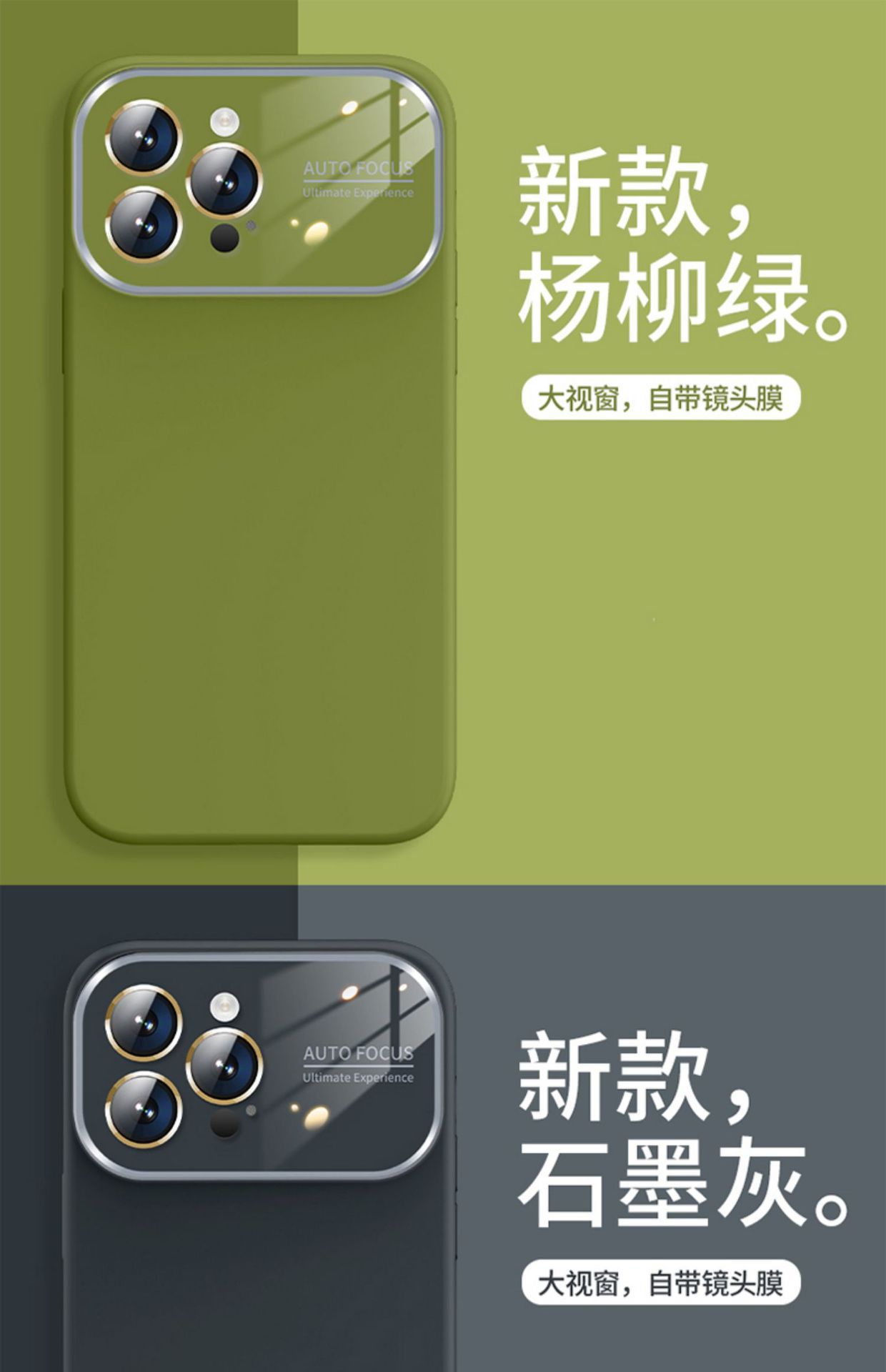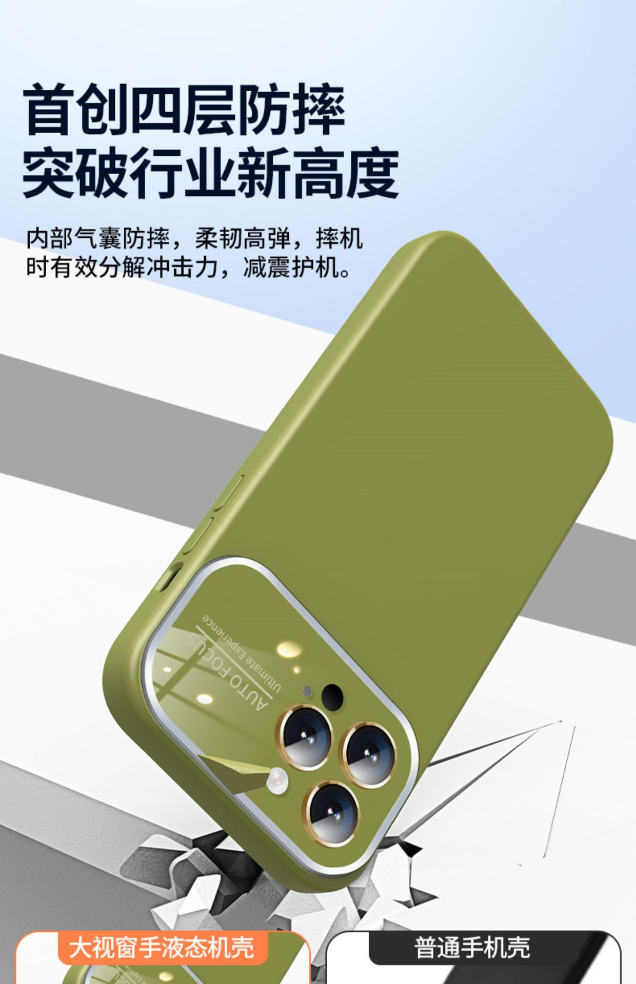 액체 대형 창이 있는 애플 17프로맥스 휴대폰 케이스, 아이폰16 렌즈 필름 포함 실리콘 보호 케이스 15