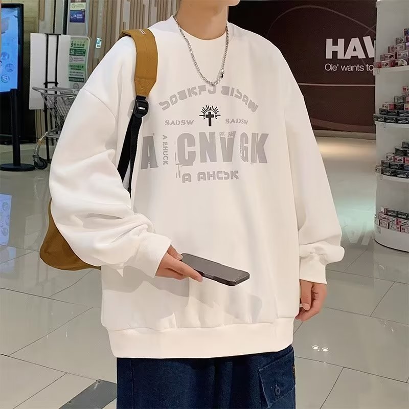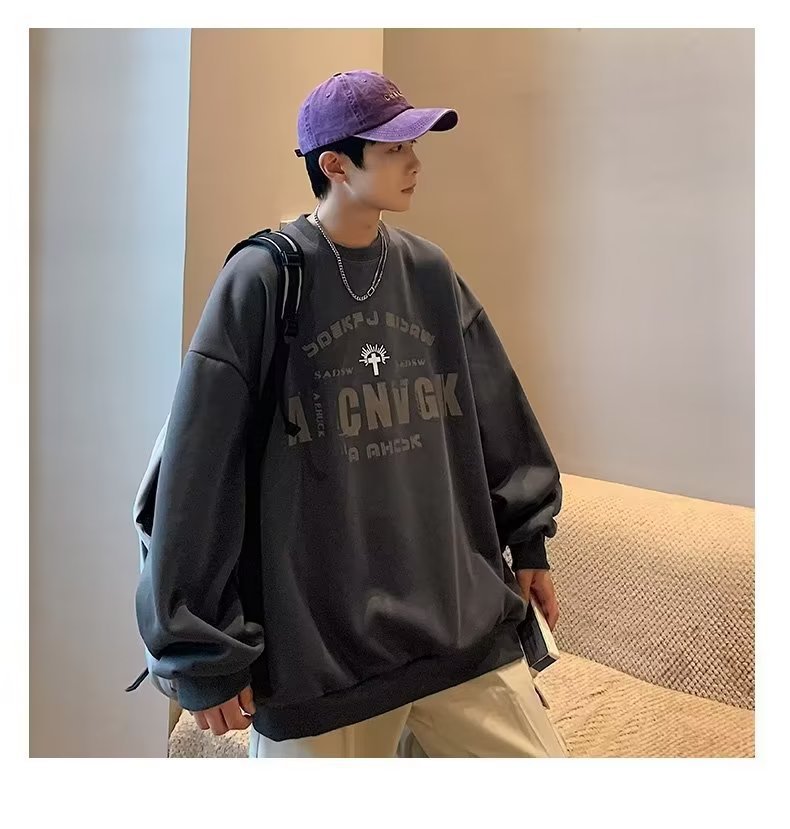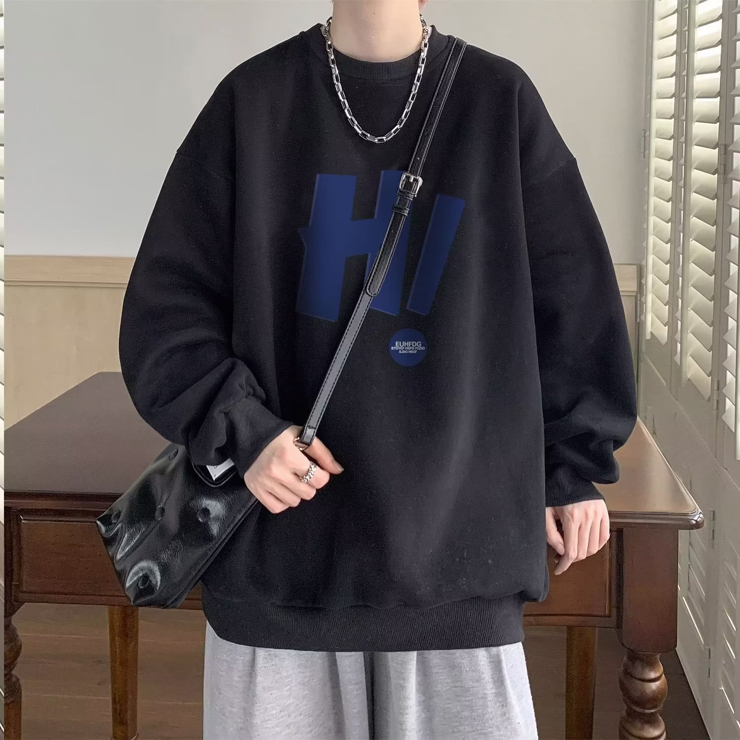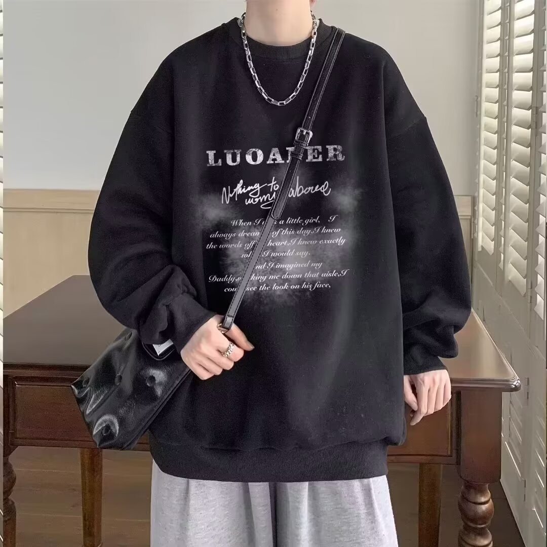 봄과 가을 Wei Yi 남자의 느슨한 트렌드 홍콩 스타일 티셔츠 학생 레저 긴 소매 크루 넥 재킷스토어 가기