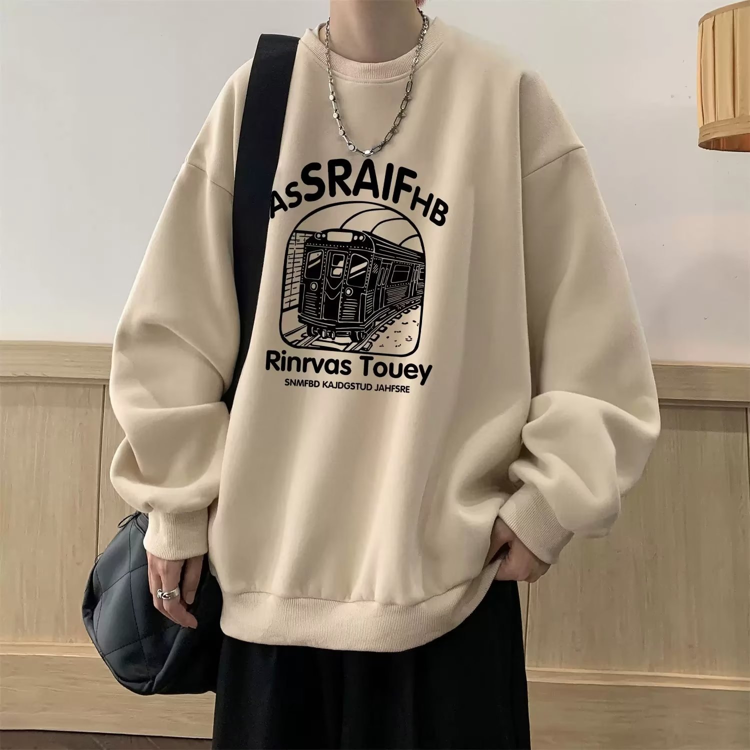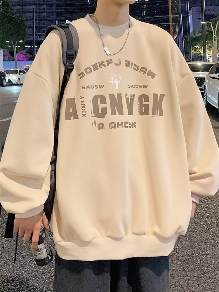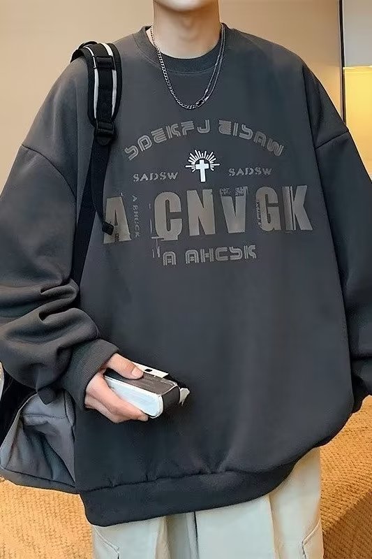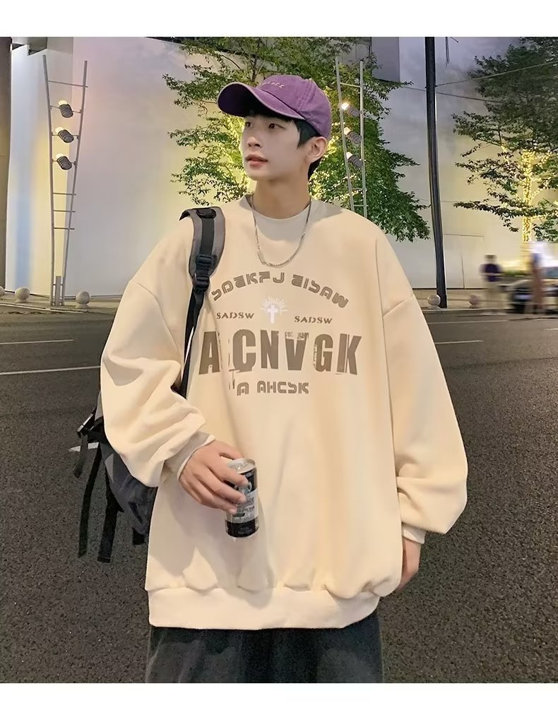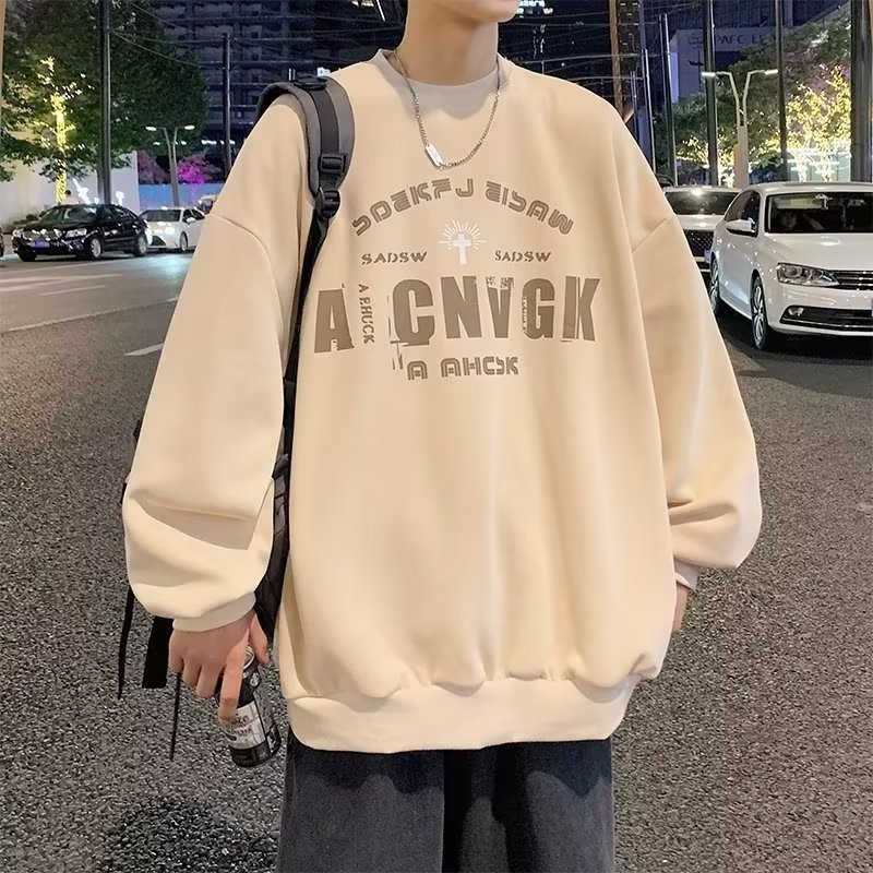 봄과 가을 Wei Yi 남자의 느슨한 트렌드 홍콩 스타일 티셔츠 학생 레저 긴 소매 크루 넥 재킷스토어 가기