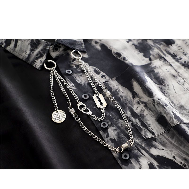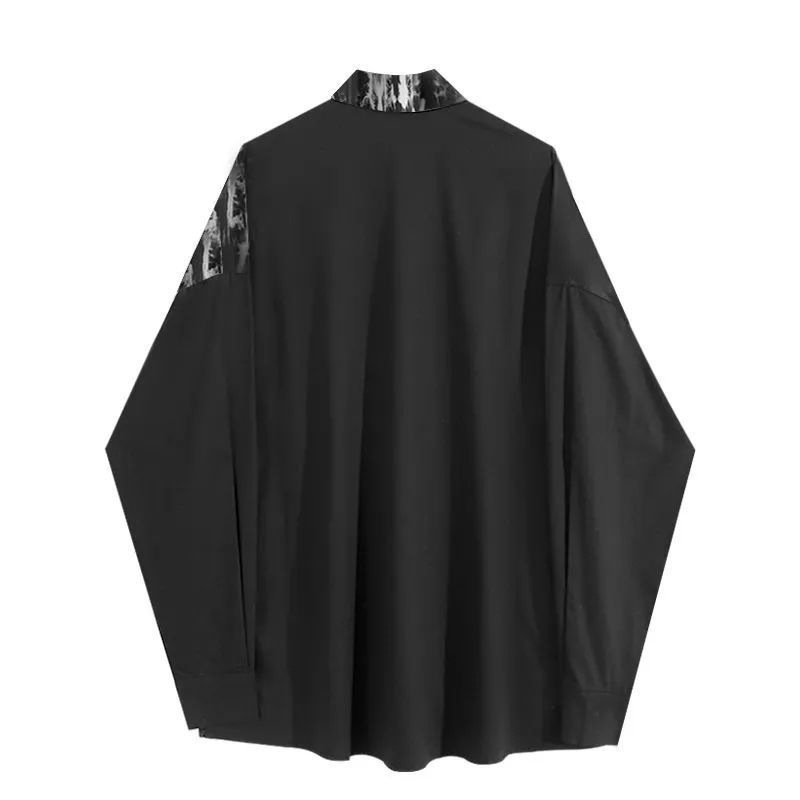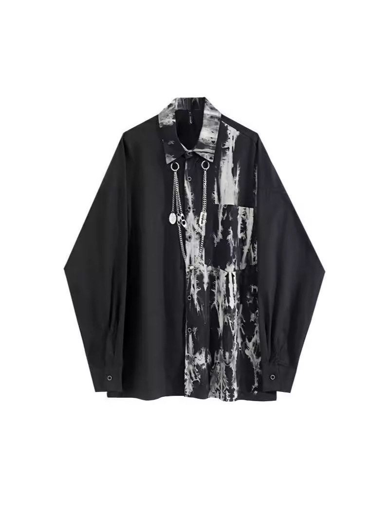 느슨한 유니섹스 레트로 타이 다이 스티칭 금속 목걸이 어두운 긴 소매 셔츠 하이 스트리트 트렌디 쿨 틈새 펑크 탑