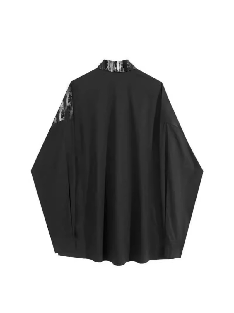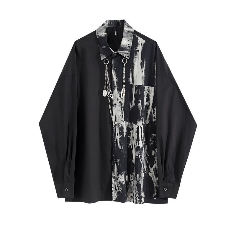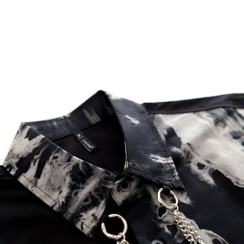 느슨한 유니섹스 레트로 타이 다이 스티칭 금속 목걸이 어두운 긴 소매 셔츠 하이 스트리트 트렌디 쿨 틈새 펑크 탑스토어 가기