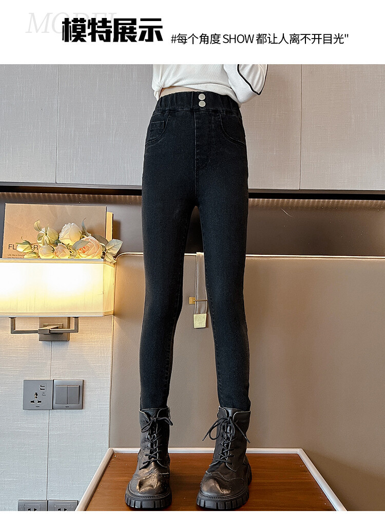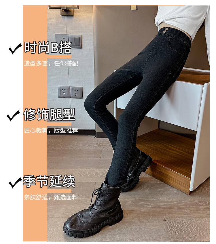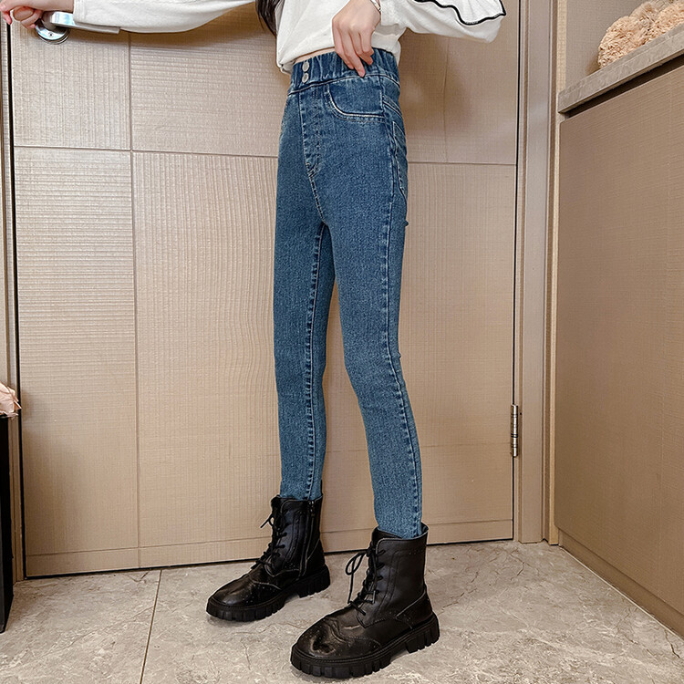 소녀 데님 바지 가을 겨울 2024 새로운 어린이 서양식 기모 걸스 슬림-딱 맞는 따뜻한 바지스토어 가기