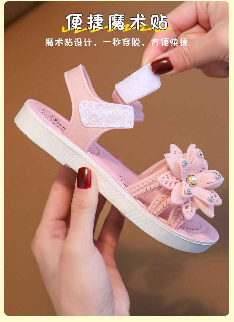 2025 여름 새로운 소프트 단독 미끄럼 방지 소녀 샌들 편안한 패션 공주 신발 대형, 중형 및 소형 키즈 소녀 샌들스토어 가기