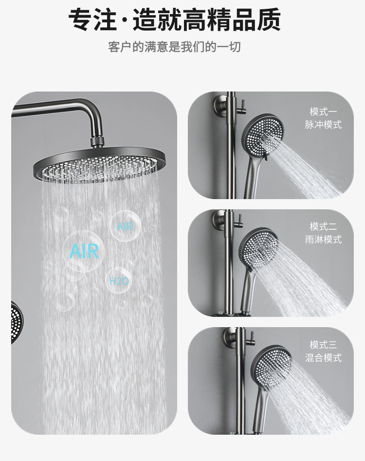 심플 샤워기 세트, 가압 및 이중 기능, 순동, 호텔 엔지니어링, 고급 구리 도금, 브러시드 건메탈 색상