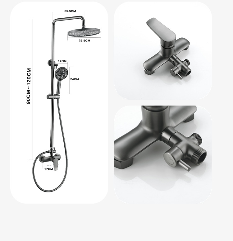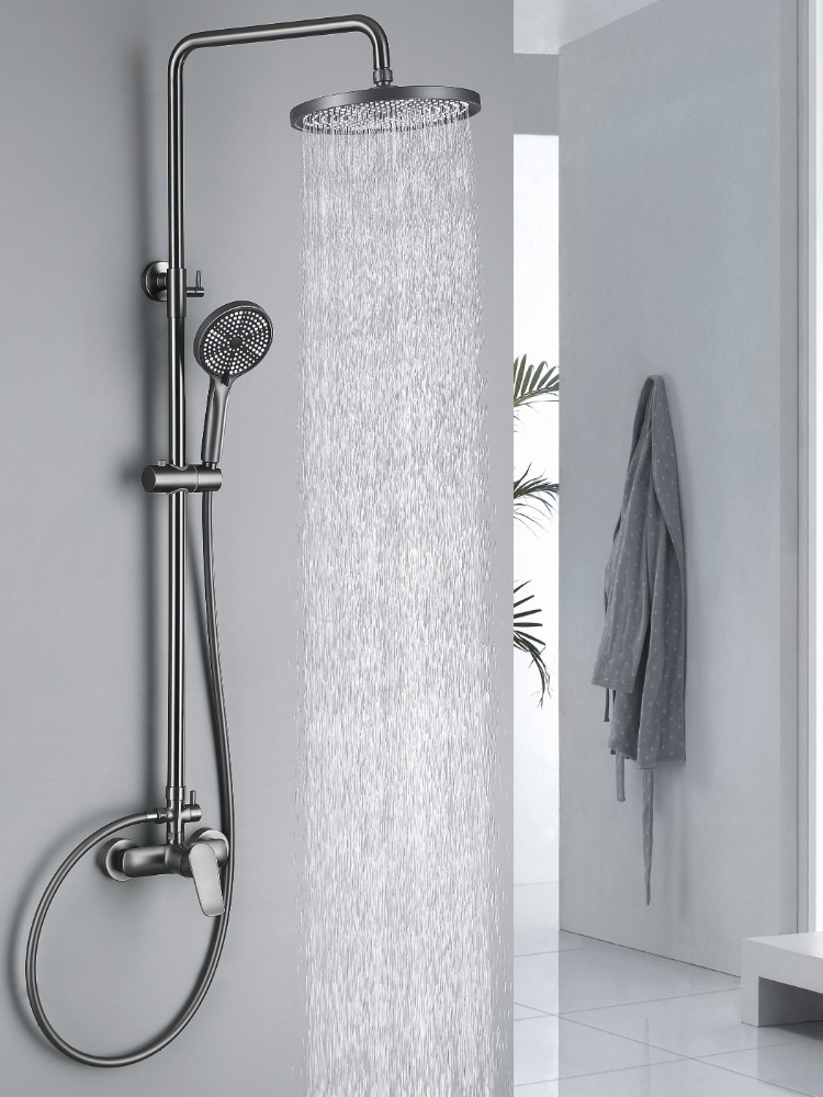심플 샤워기 세트, 가압 및 이중 기능, 순동, 호텔 엔지니어링, 고급 구리 도금, 브러시드 건메탈 색상스토어 가기