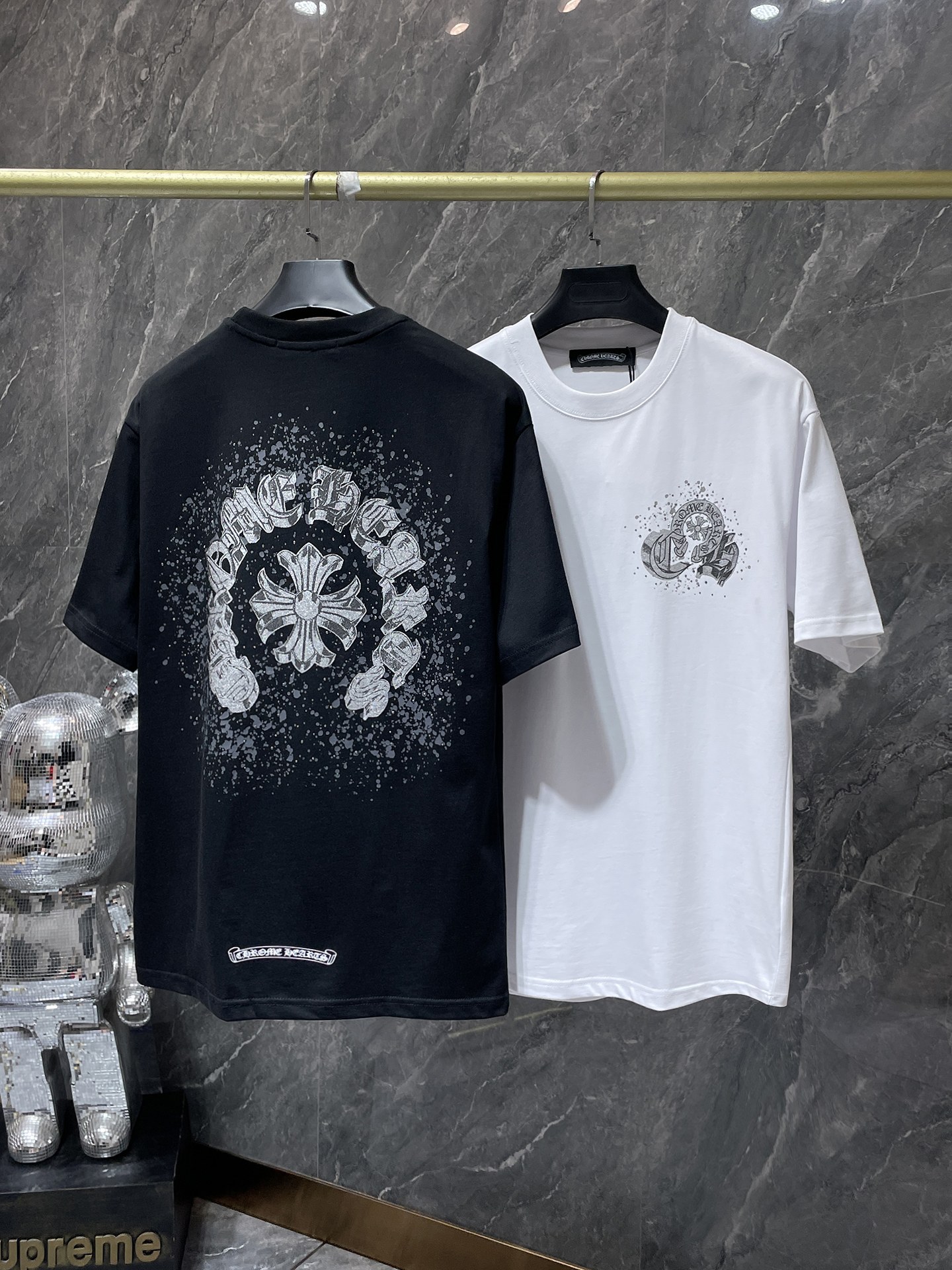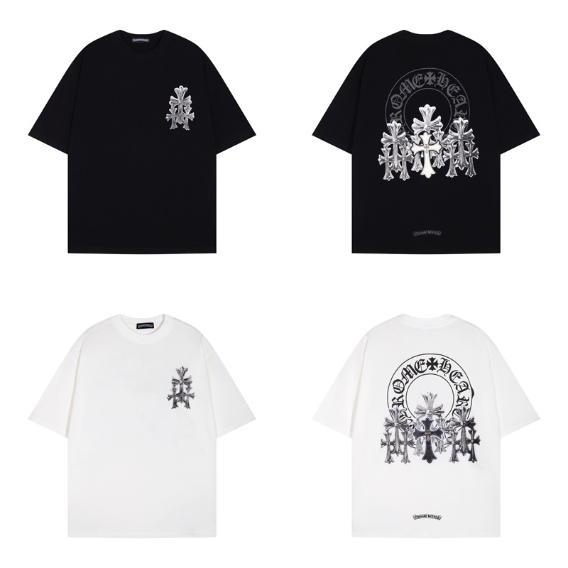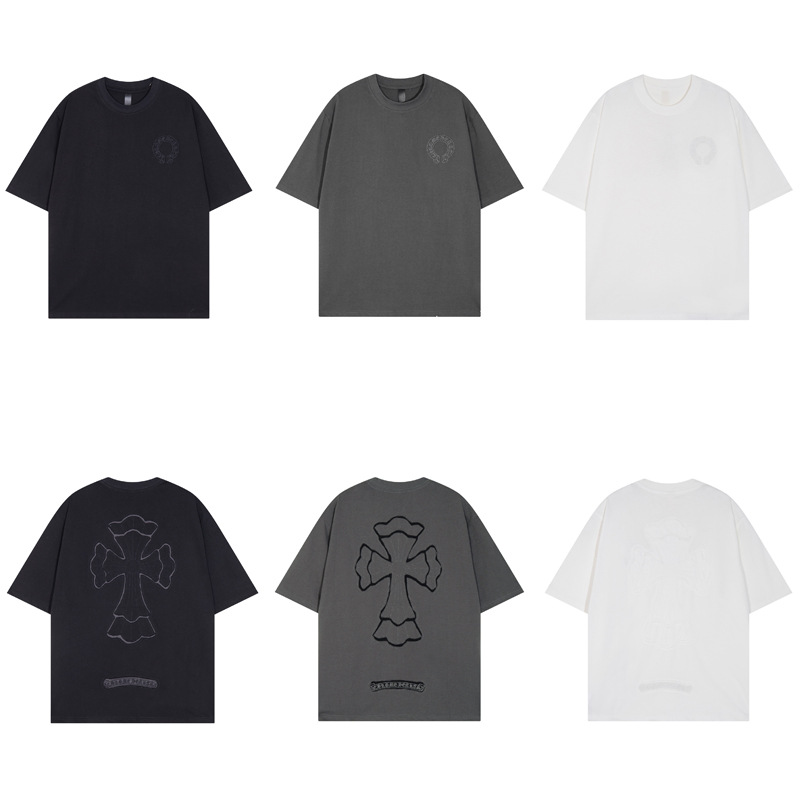 24 여름 조수 브랜드 크로우 크로스 산스크리트어 자수 남녀 조커 캐주얼 루즈 티셔츠스토어 가기