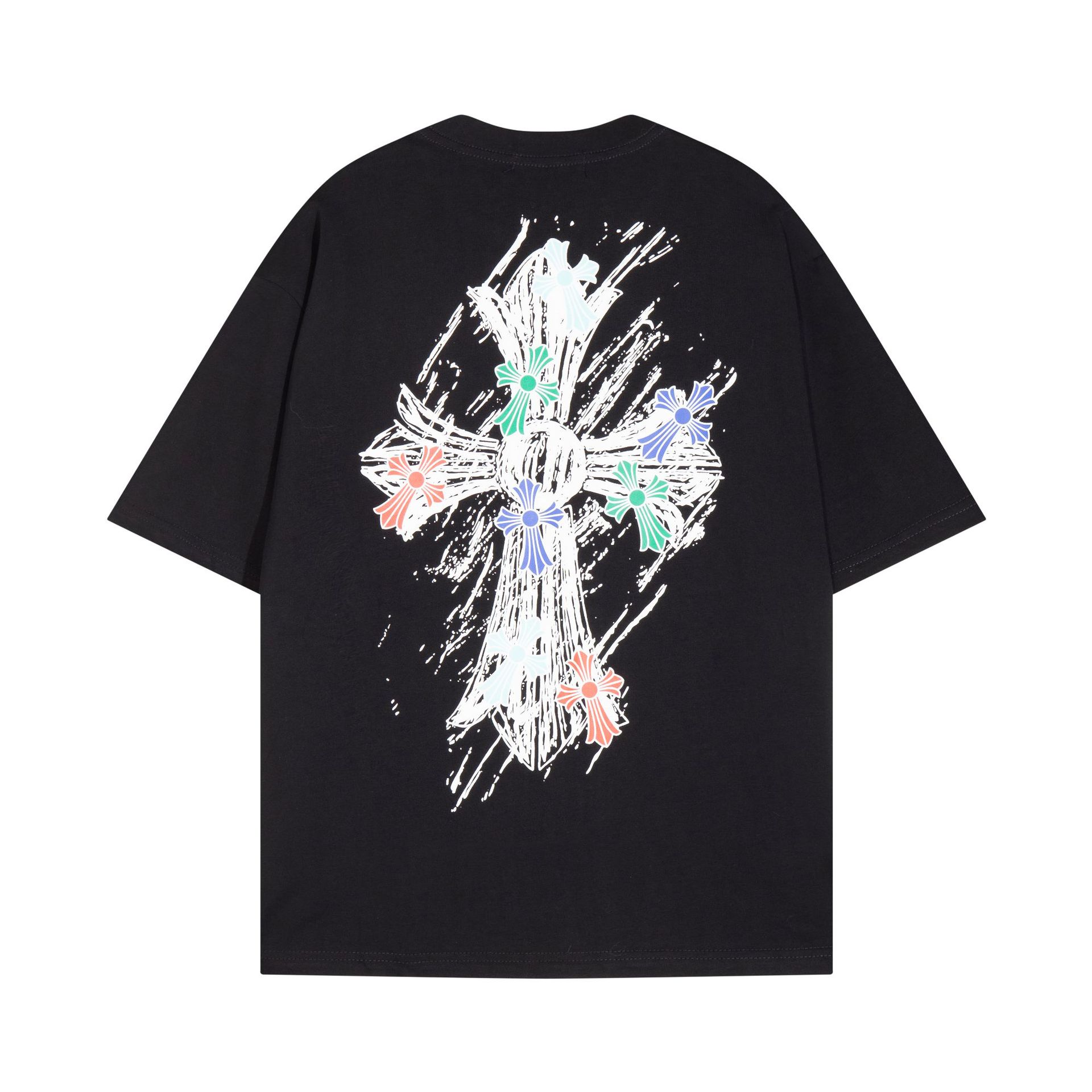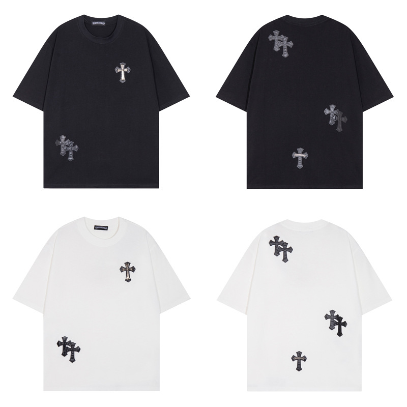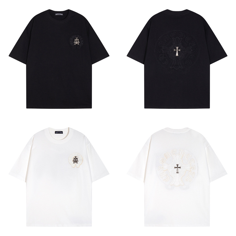 24 여름 조수 브랜드 크로우 크로스 산스크리트어 자수 남녀 조커 캐주얼 루즈 티셔츠