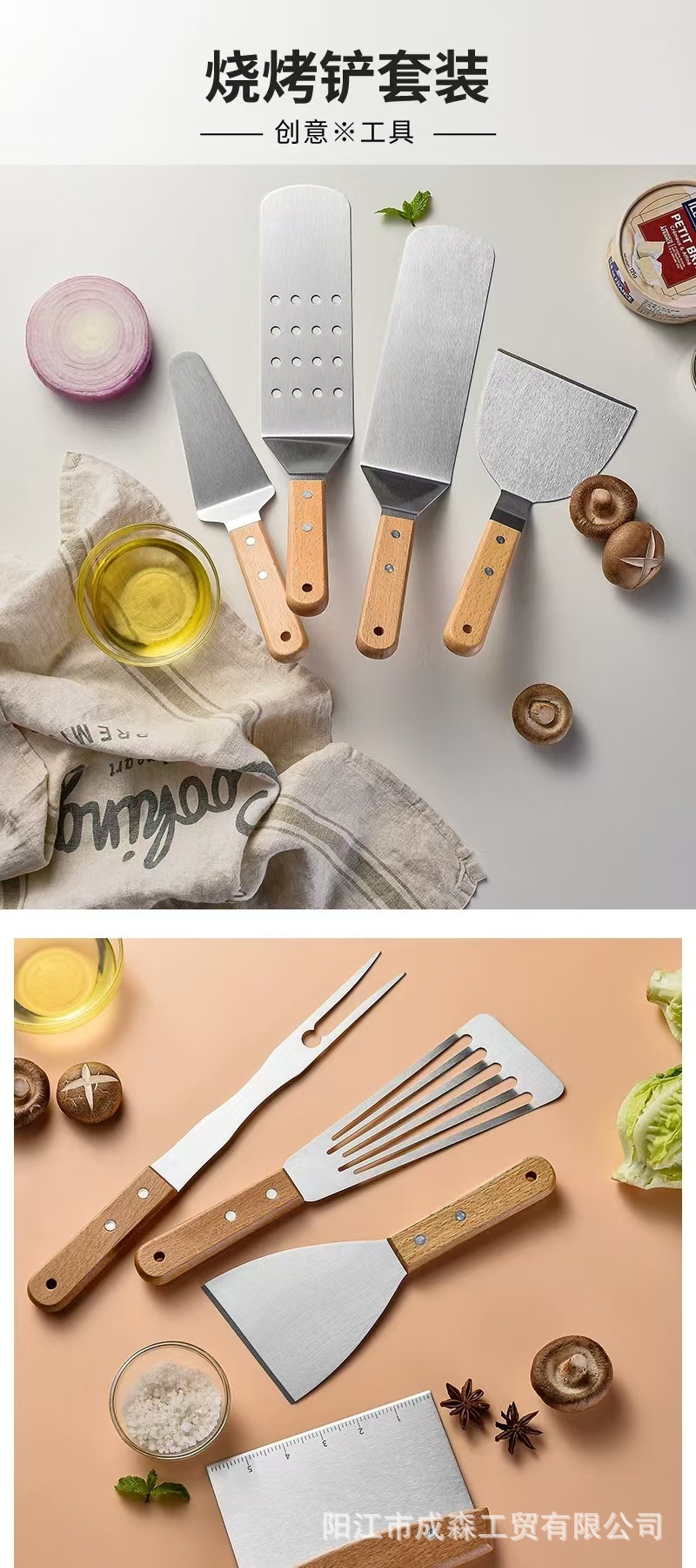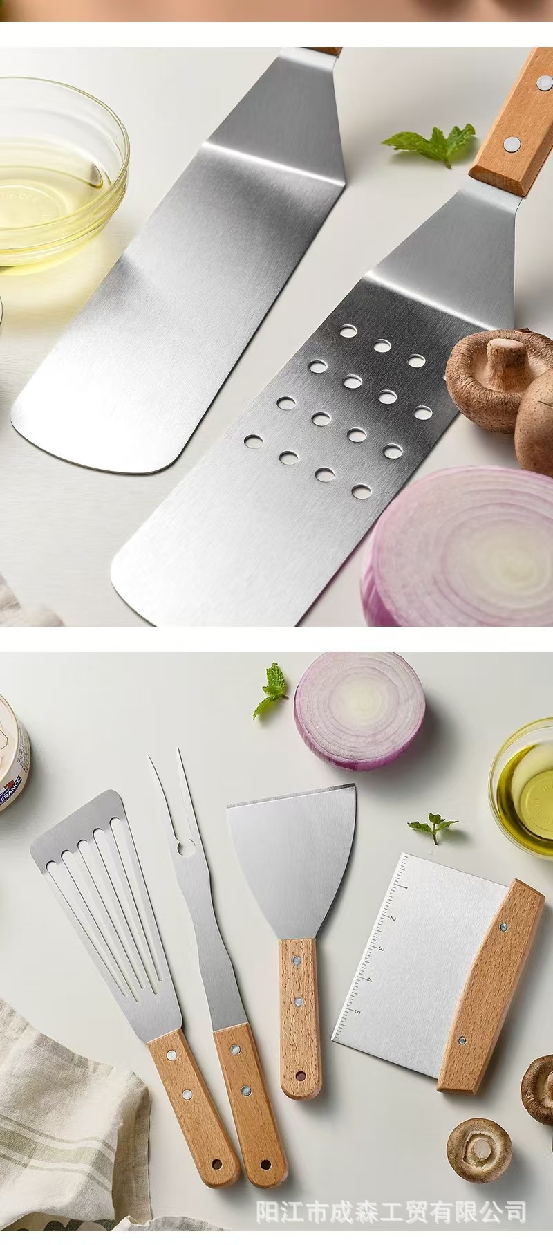 주방 도구 나무 손잡이 요리용 주걱 스테인리스 다용도 프라이팬 주걱 스테이크 피자 주걱 철판구이 다기능