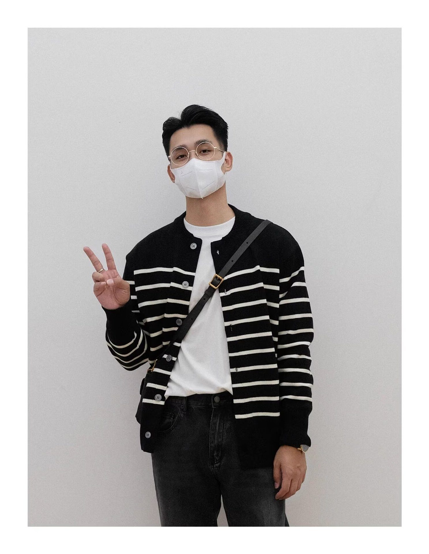 가을과 겨울 새로운 한국 스웨터 칼라 스트라이프 스웨터 따뜻한 패션 야구 칼라 재킷 남녀스토어 가기