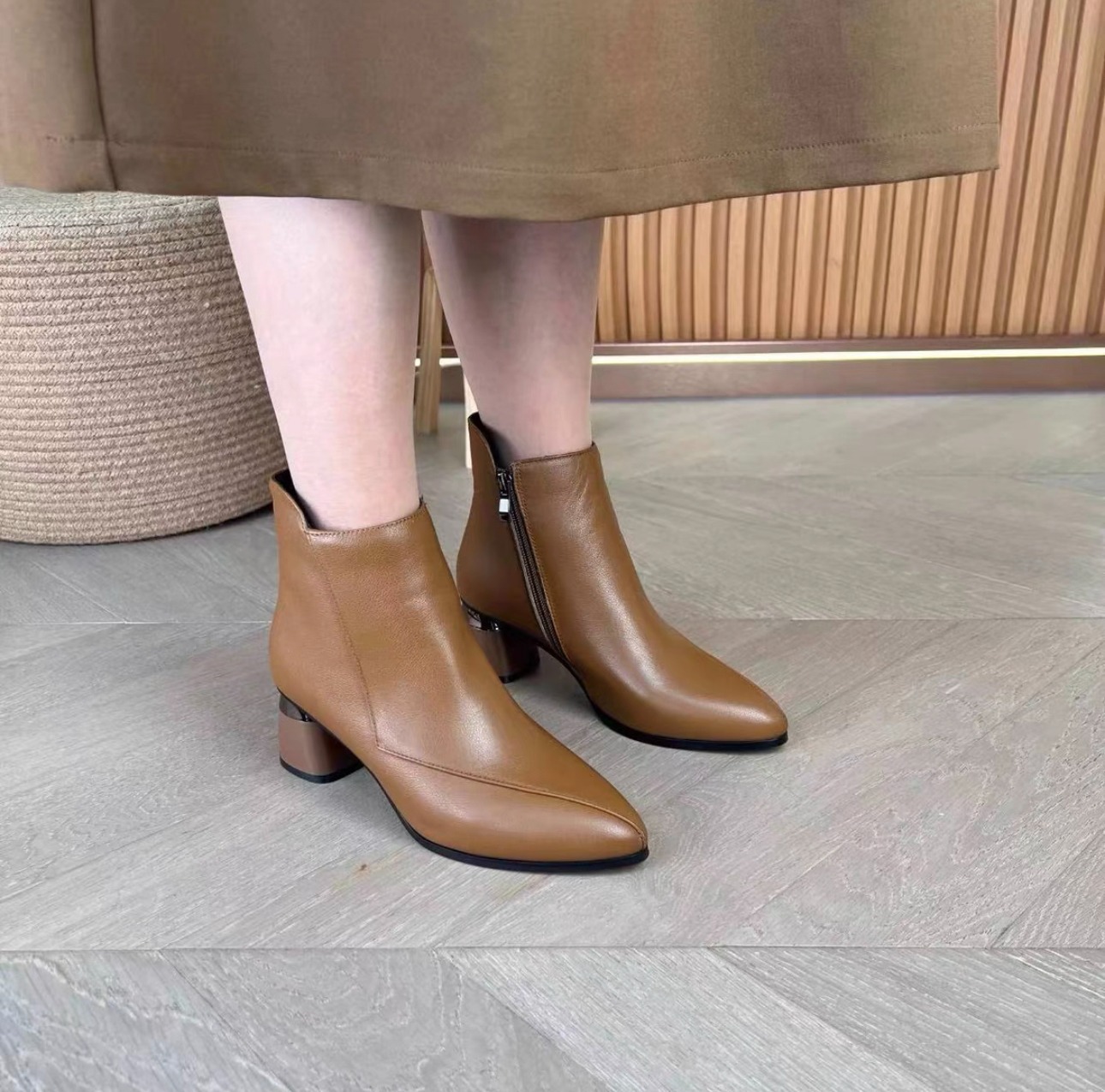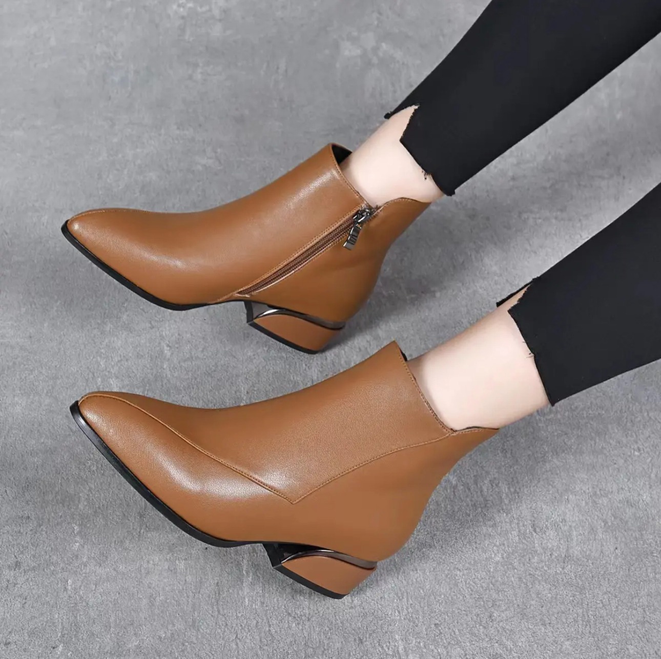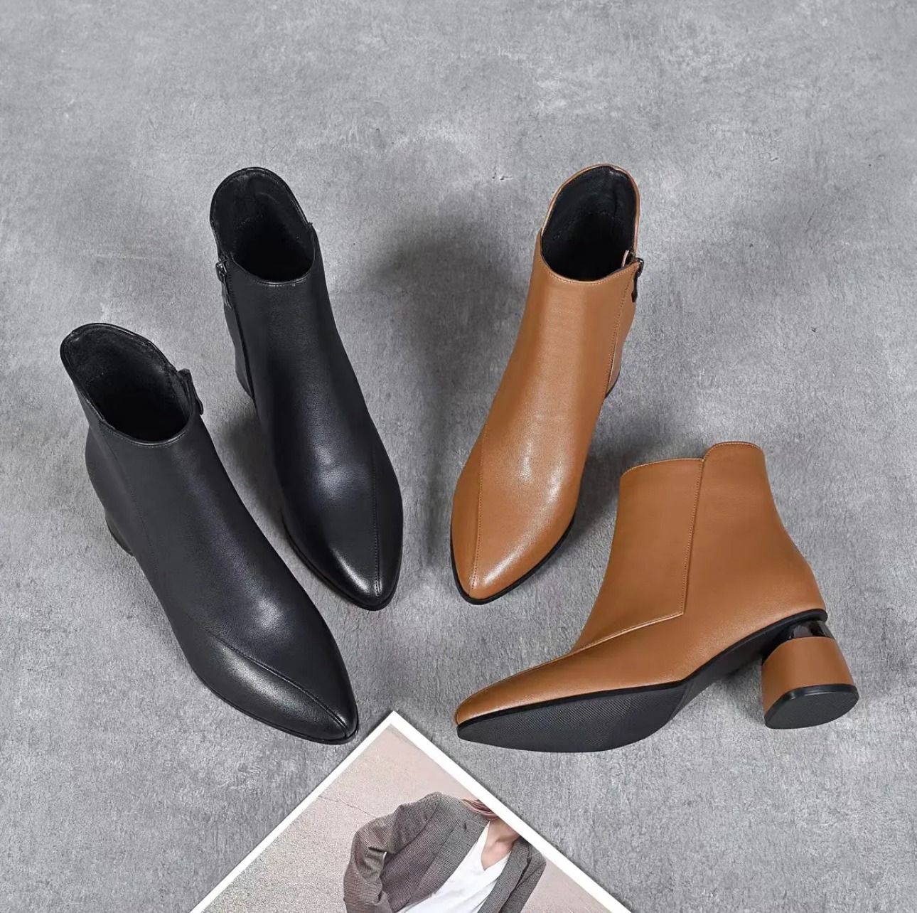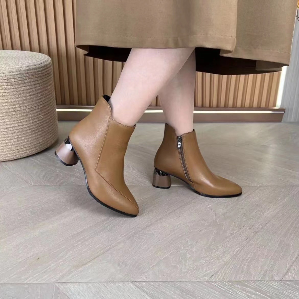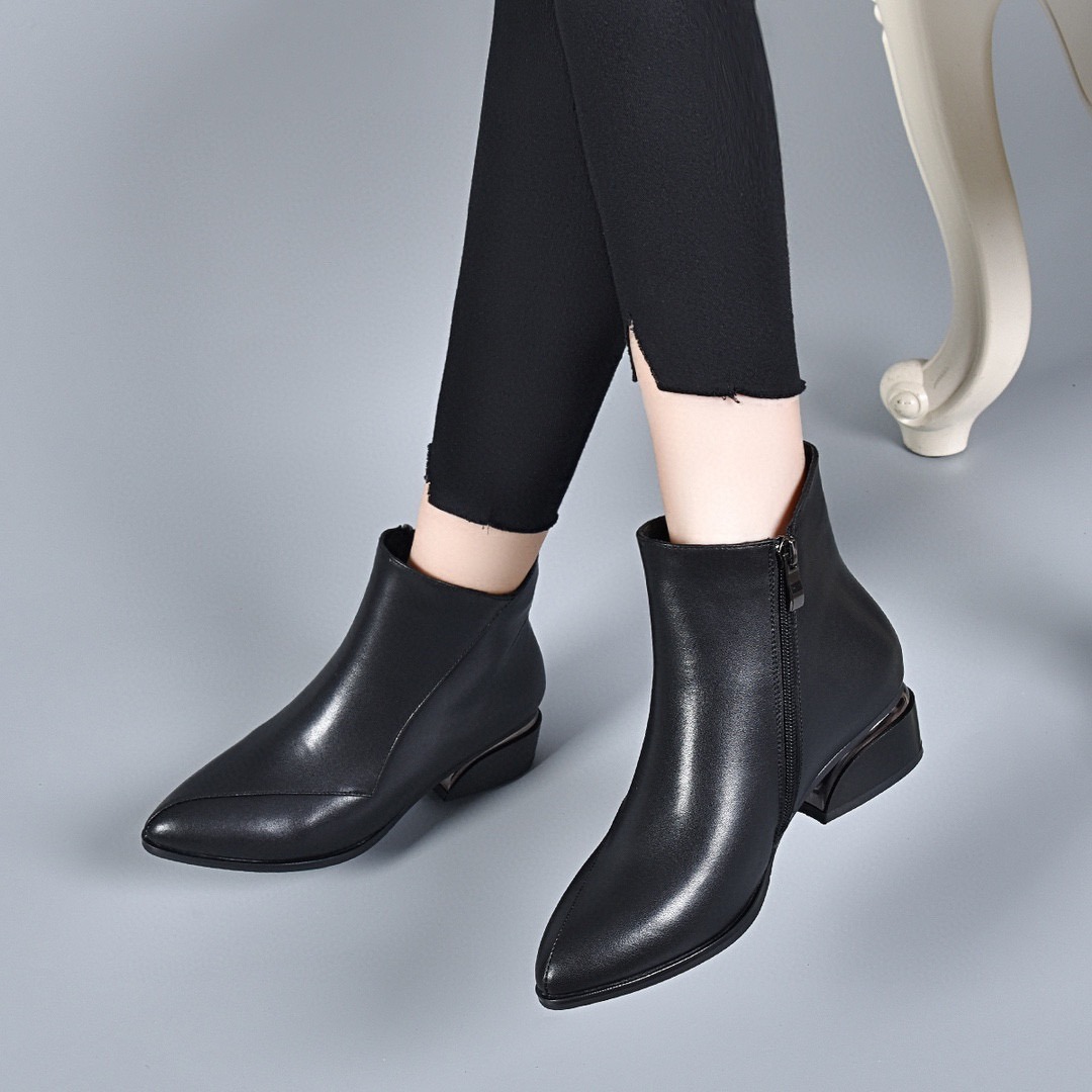 영국 스타일의 뾰족한 발목 부츠 2024 기모 발목 부츠 두꺼운 힐 여성 싱글 부츠 하이힐 마틴 부츠 마더 부츠스토어 가기