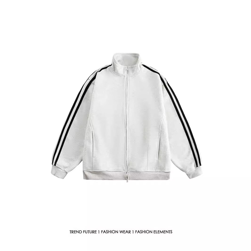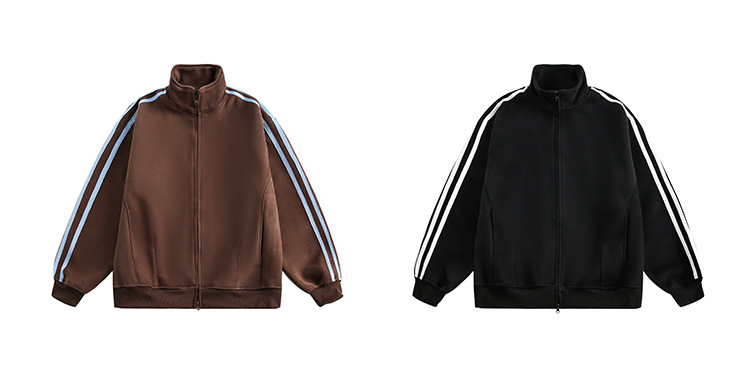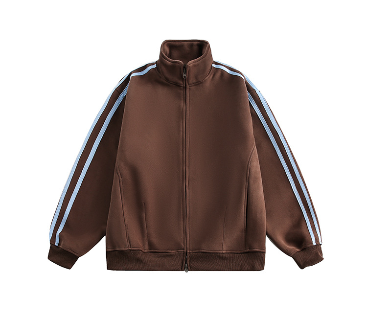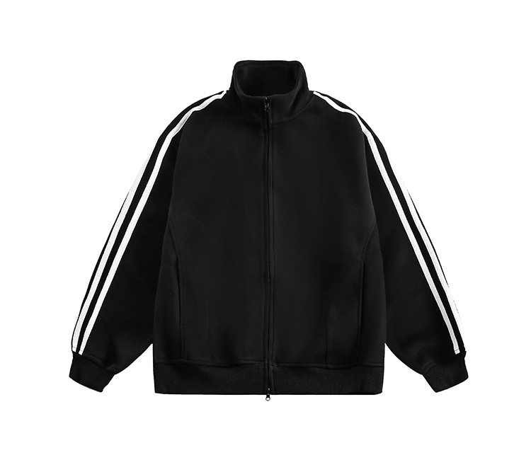아메리칸 스타일 레트로 3 바 스탠드 칼라 재킷 남성 가을 패션 브랜드 루즈 더블 헤드 지퍼 재킷 커플의 카디건 재킷
