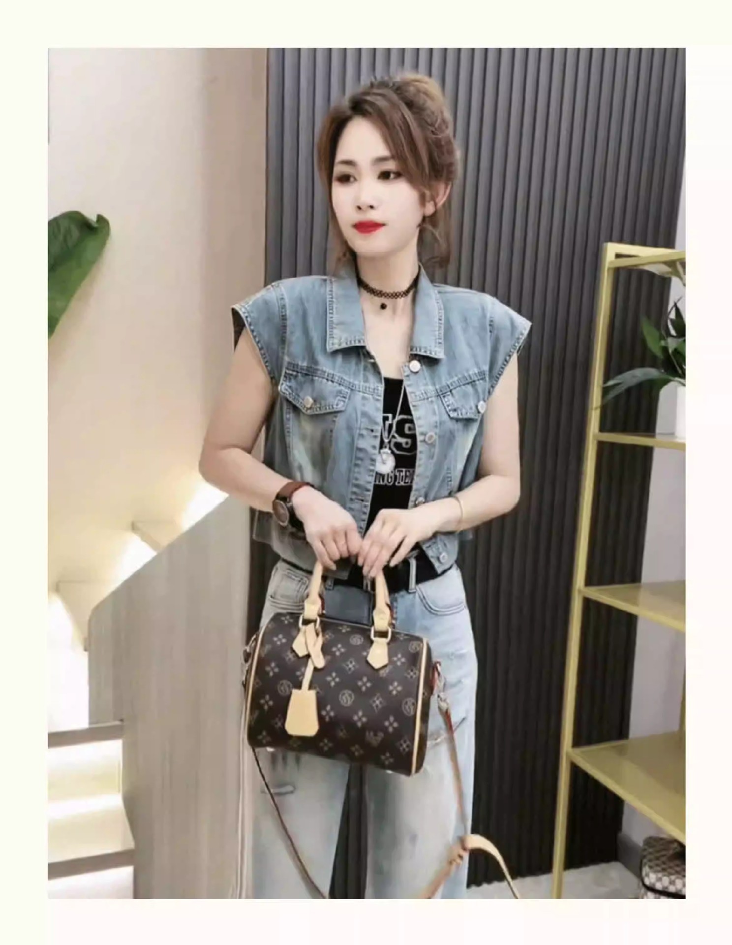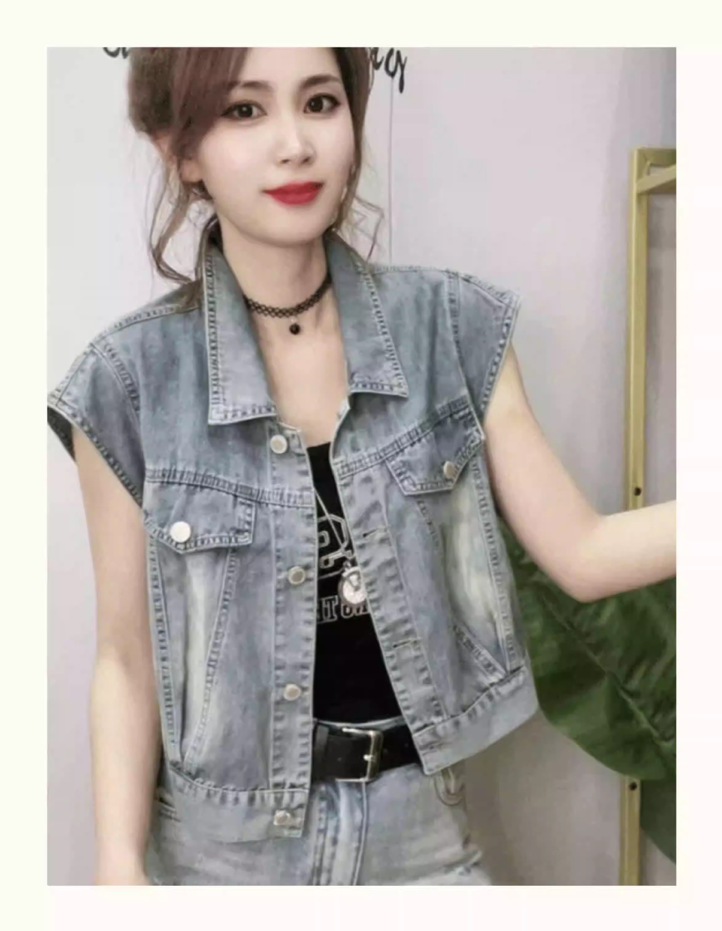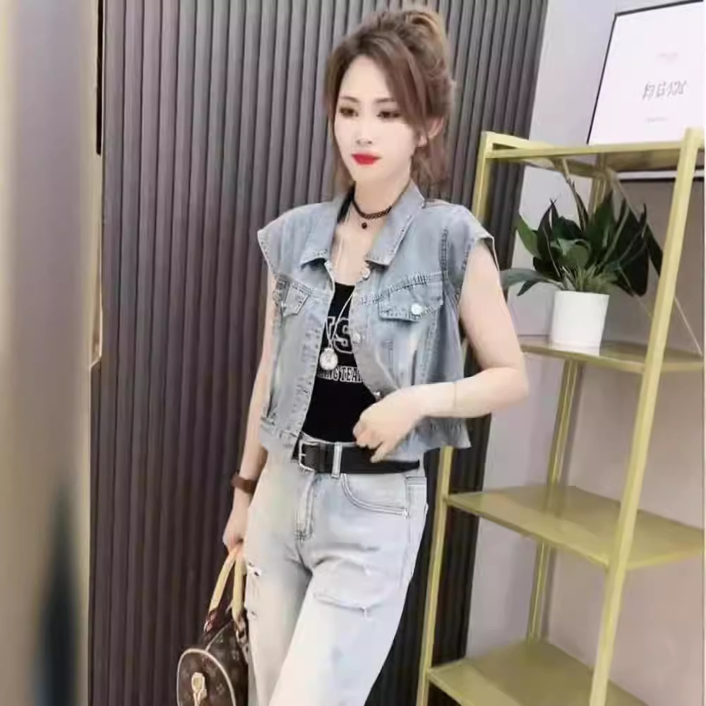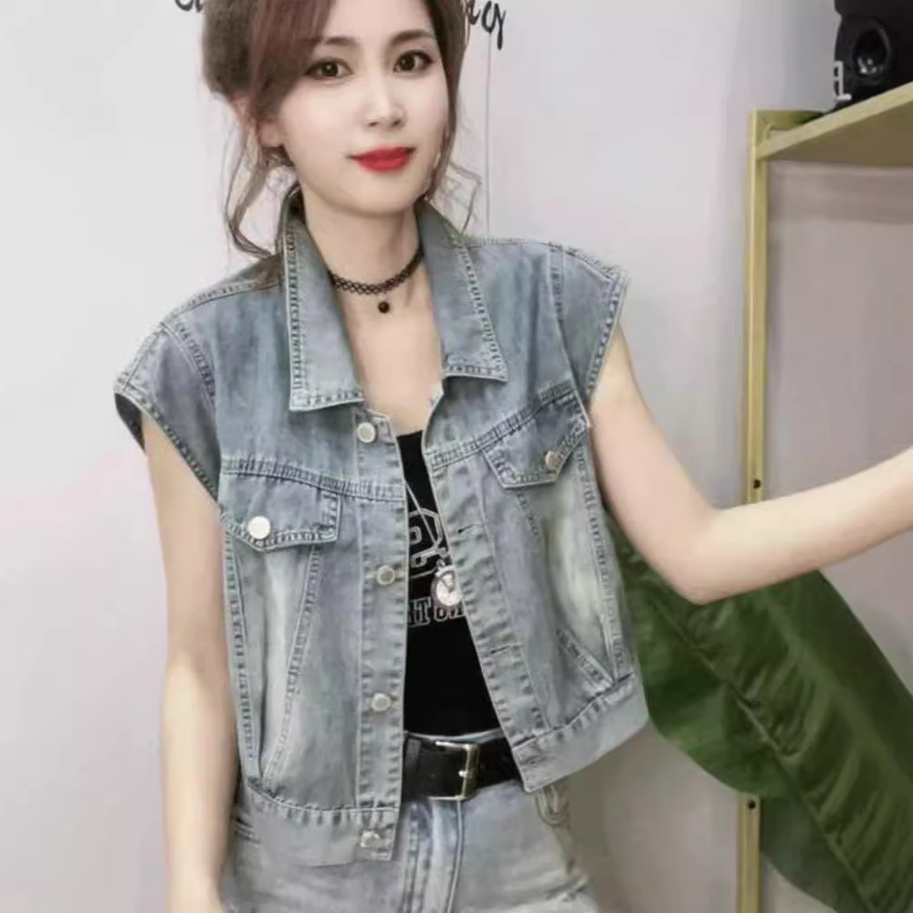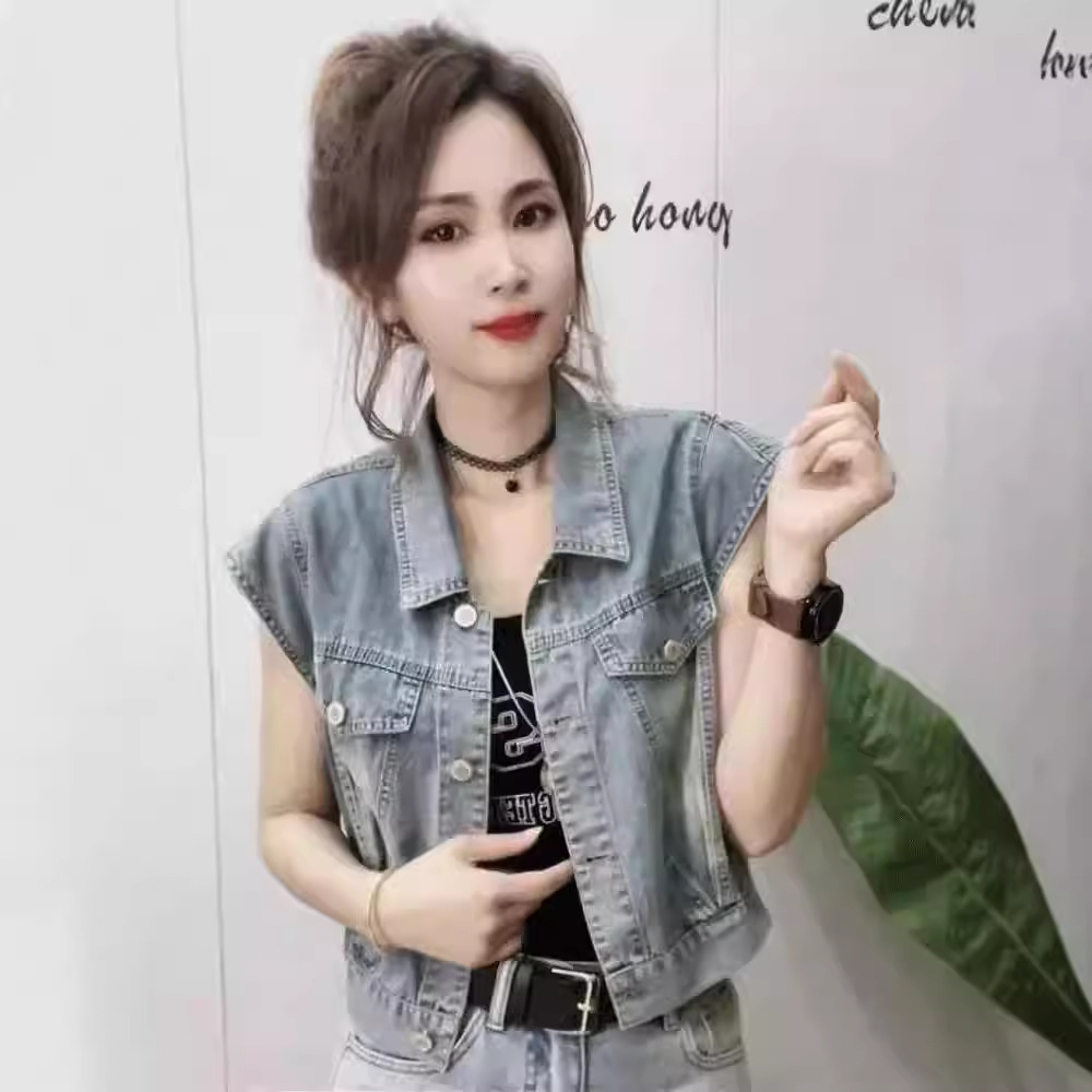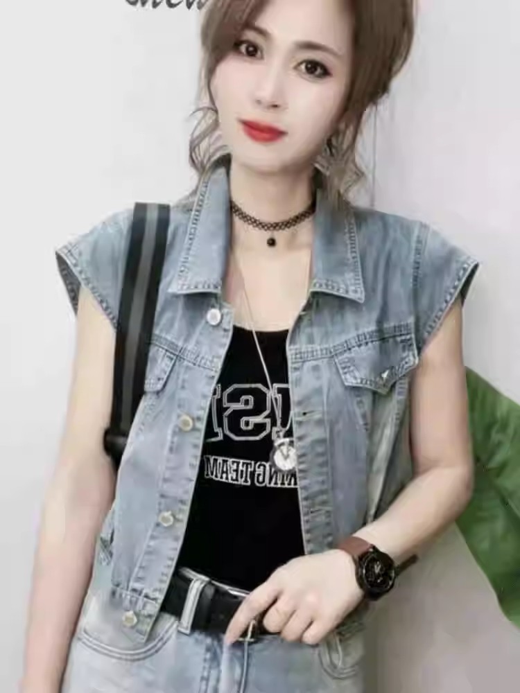 여성용 민소매 소형 재킷, 여름 얇은 스타일, 2024 새로운 스타일, 루즈하고 캐주얼한 소형 데님 조끼, 패셔너블한 짧은 스타일스토어 가기