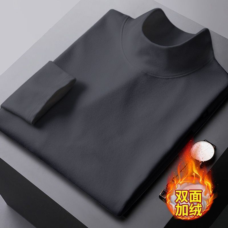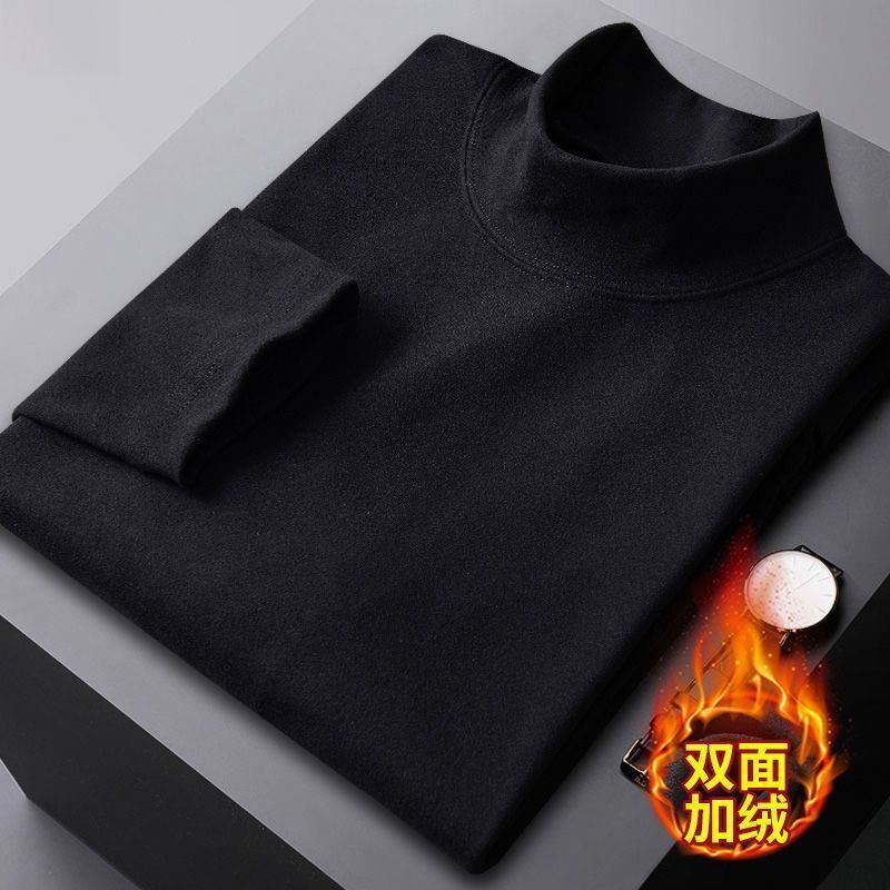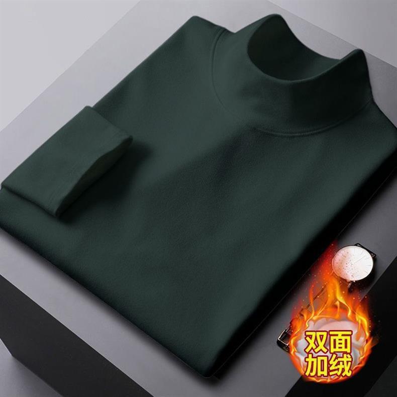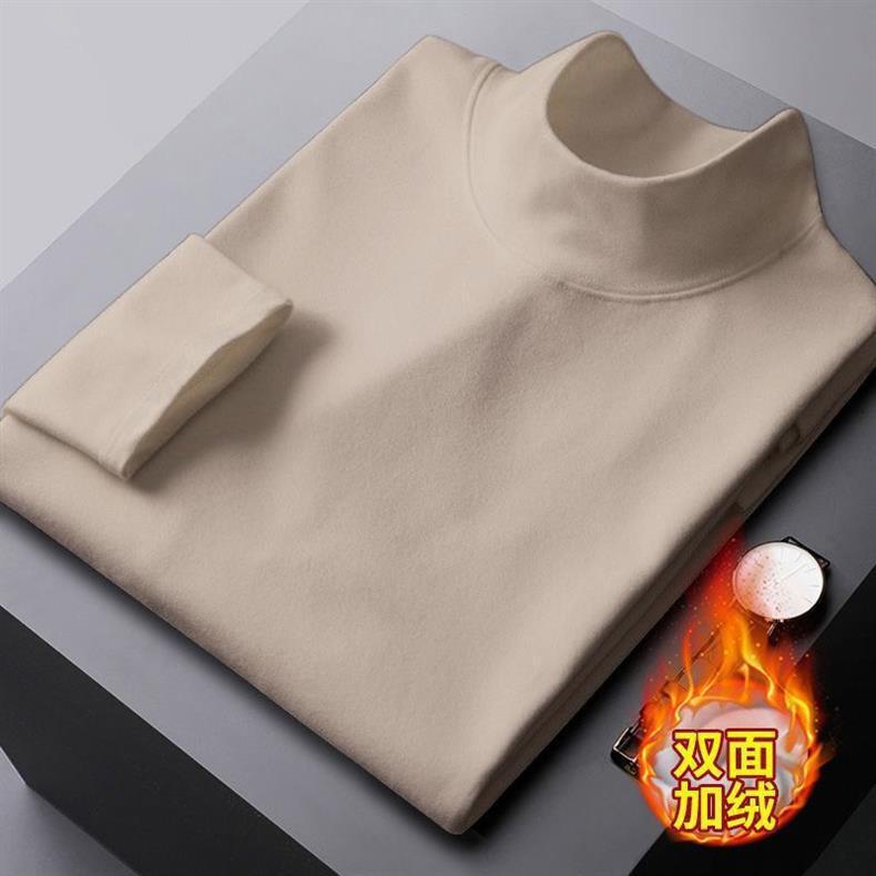 가을과 겨울 벨벳 따뜻한 반 높이 칼라베이스 셔츠 남자 미드 칼라 긴팔 티셔츠 가을 옷 기모 남성 티셔츠