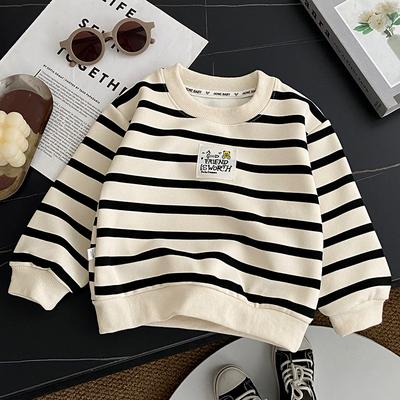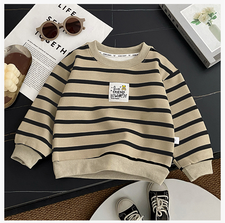남학생 '2024 년 봄 · 가을 소녀 어린이 서양식 가을 풀오버 새 스웨트 셔츠 줄무늬 한국 최고 학생 버전스토어 가기
