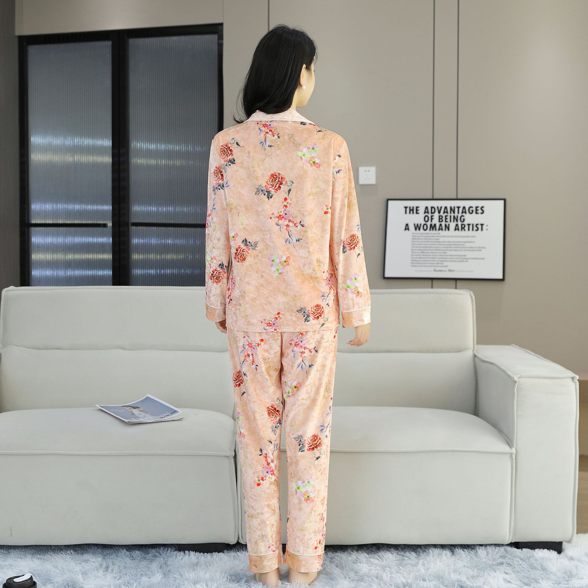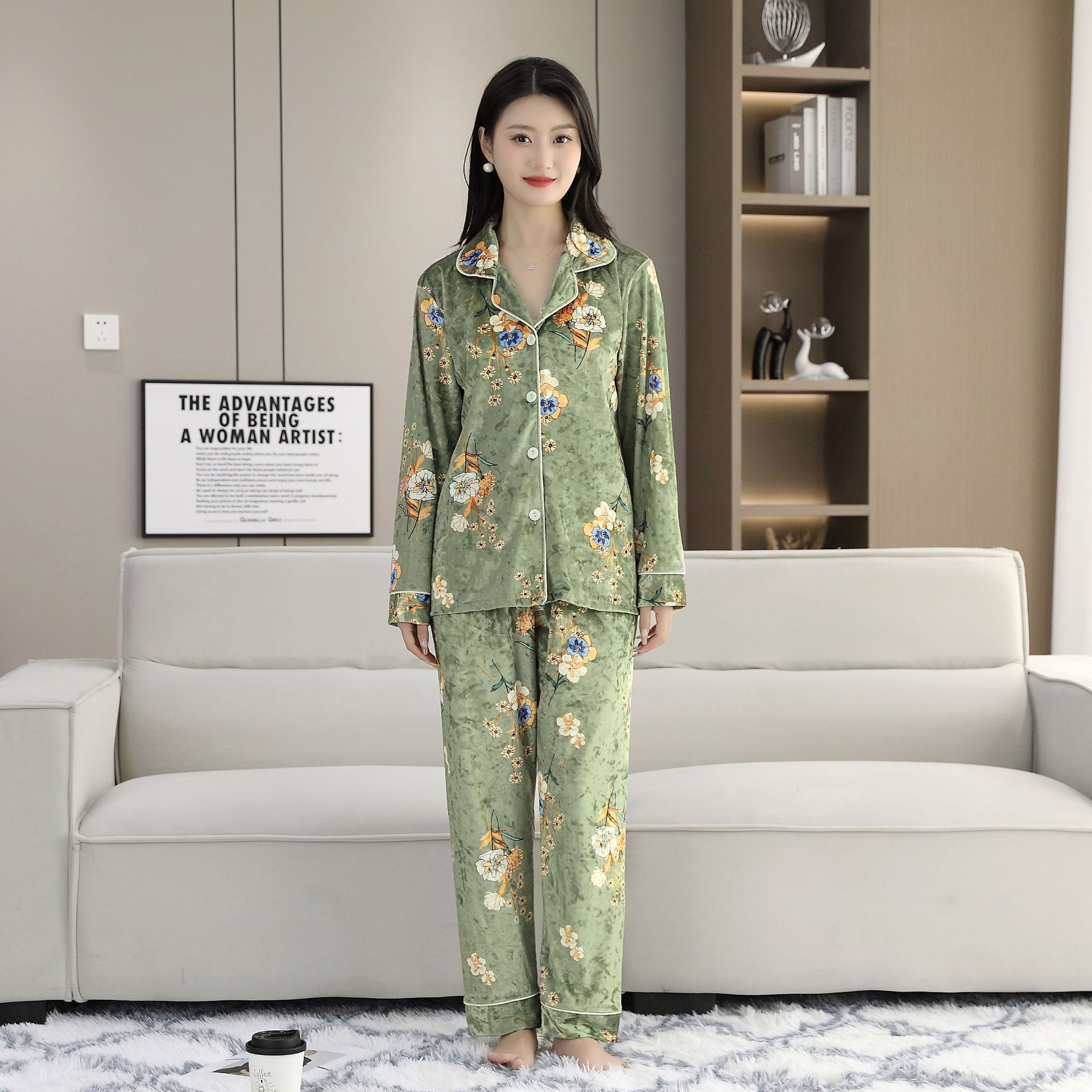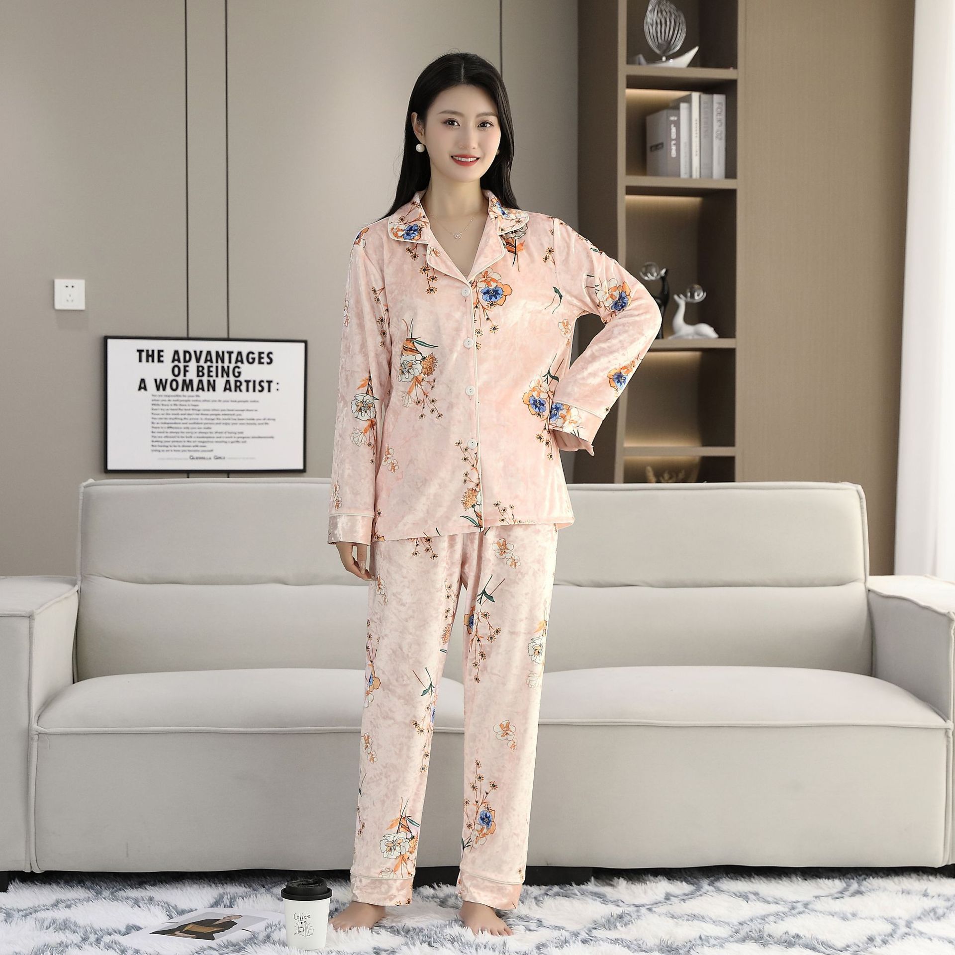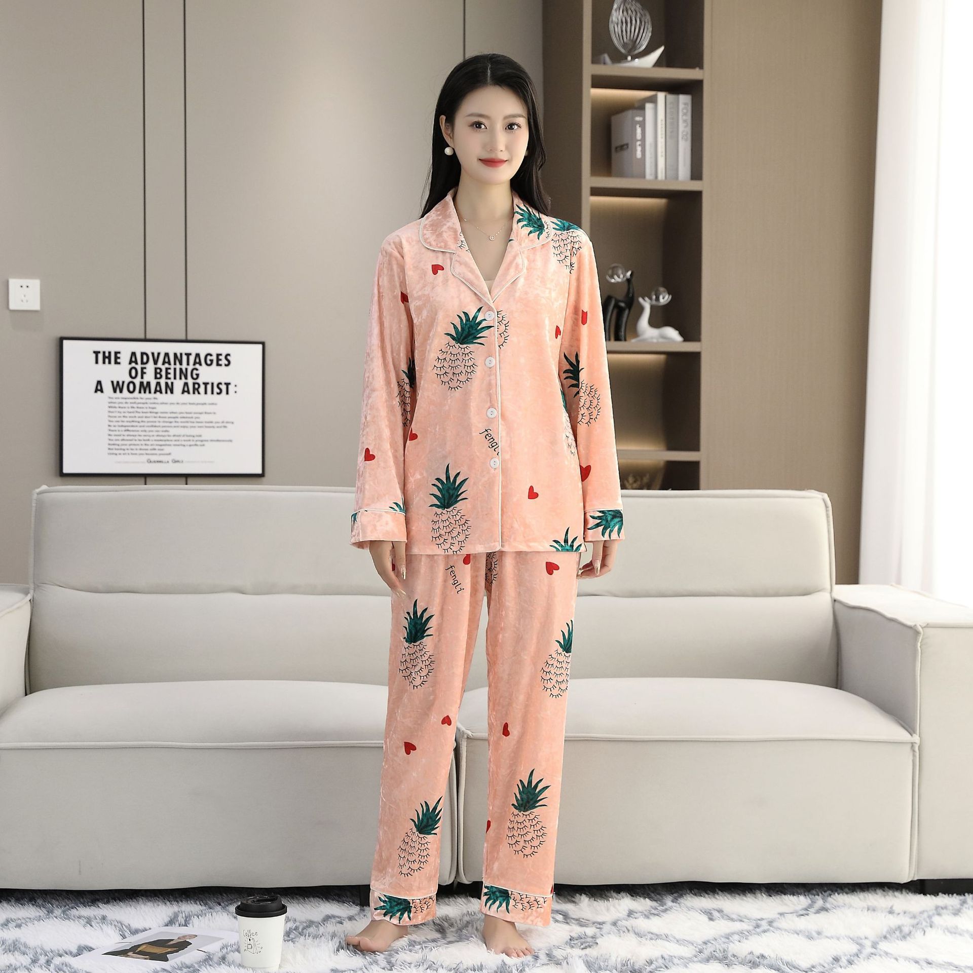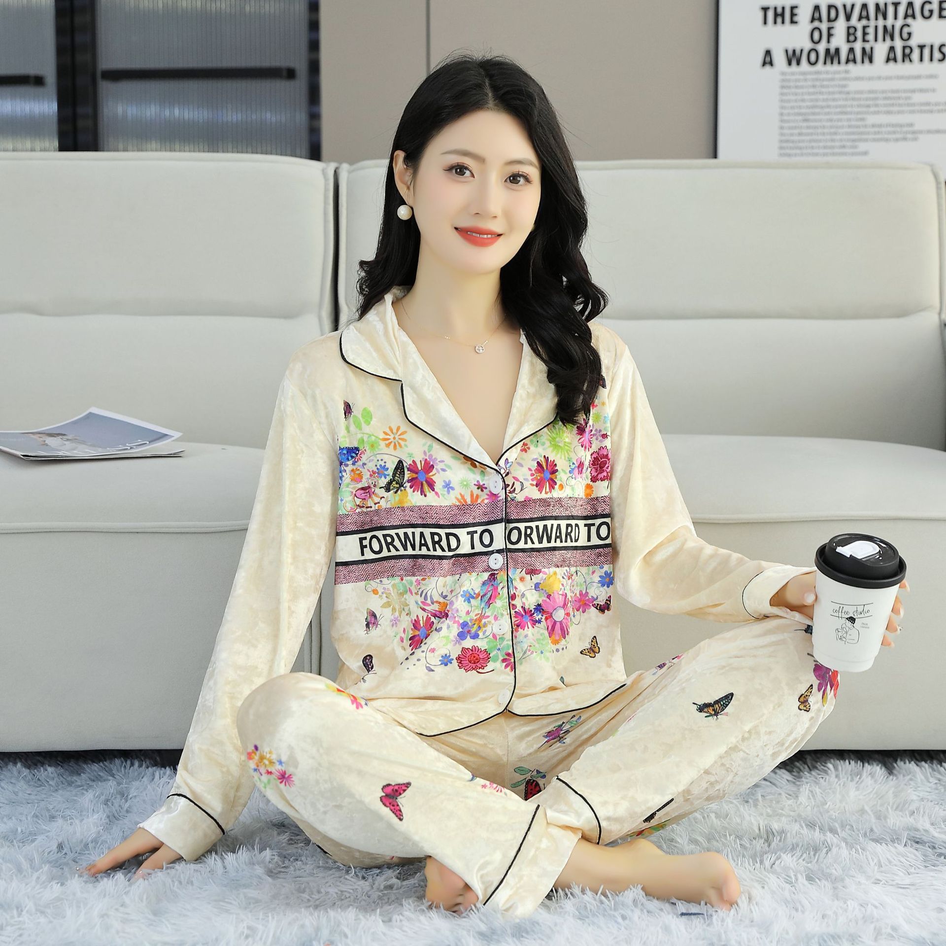 여성용 골드 벨벳 잠옷 가을 겨울 긴팔 투피스 세트 남통 홈웨어 골드 다이아몬드 벨벳 고급스러운 느낌 대형 사이즈 도매스토어 가기