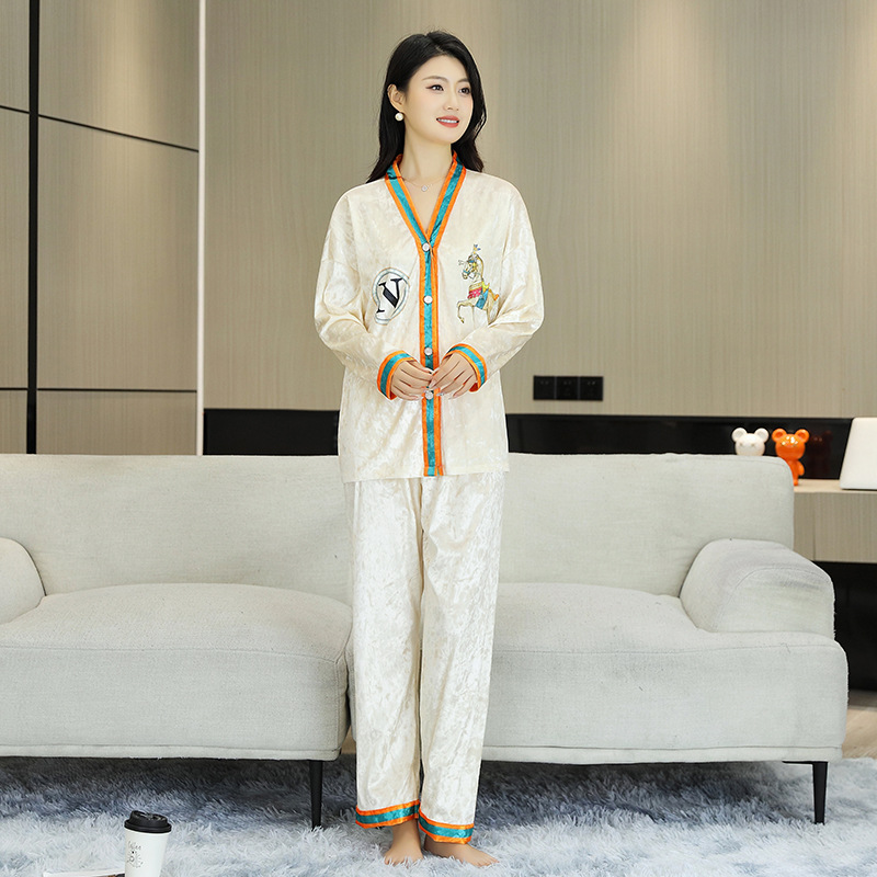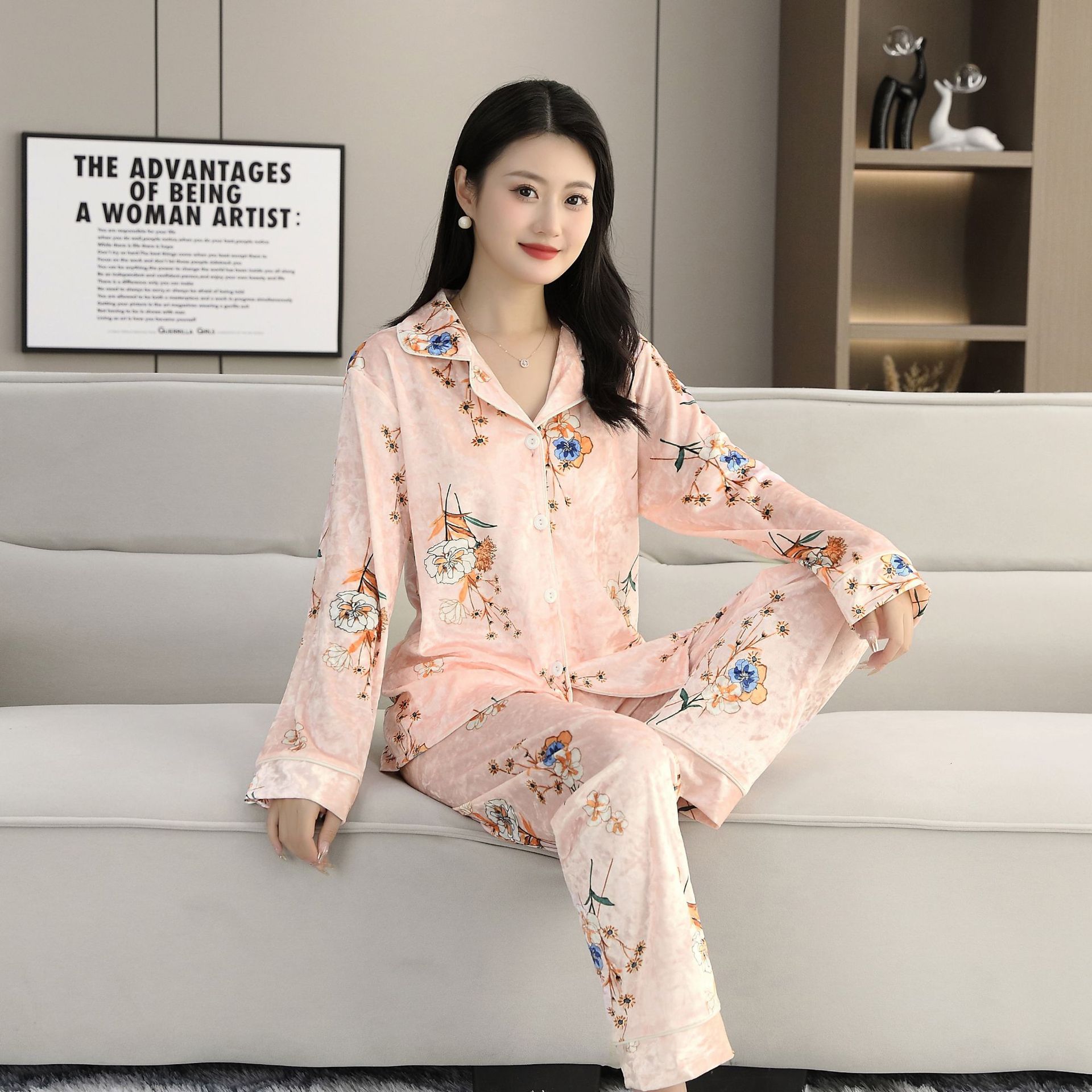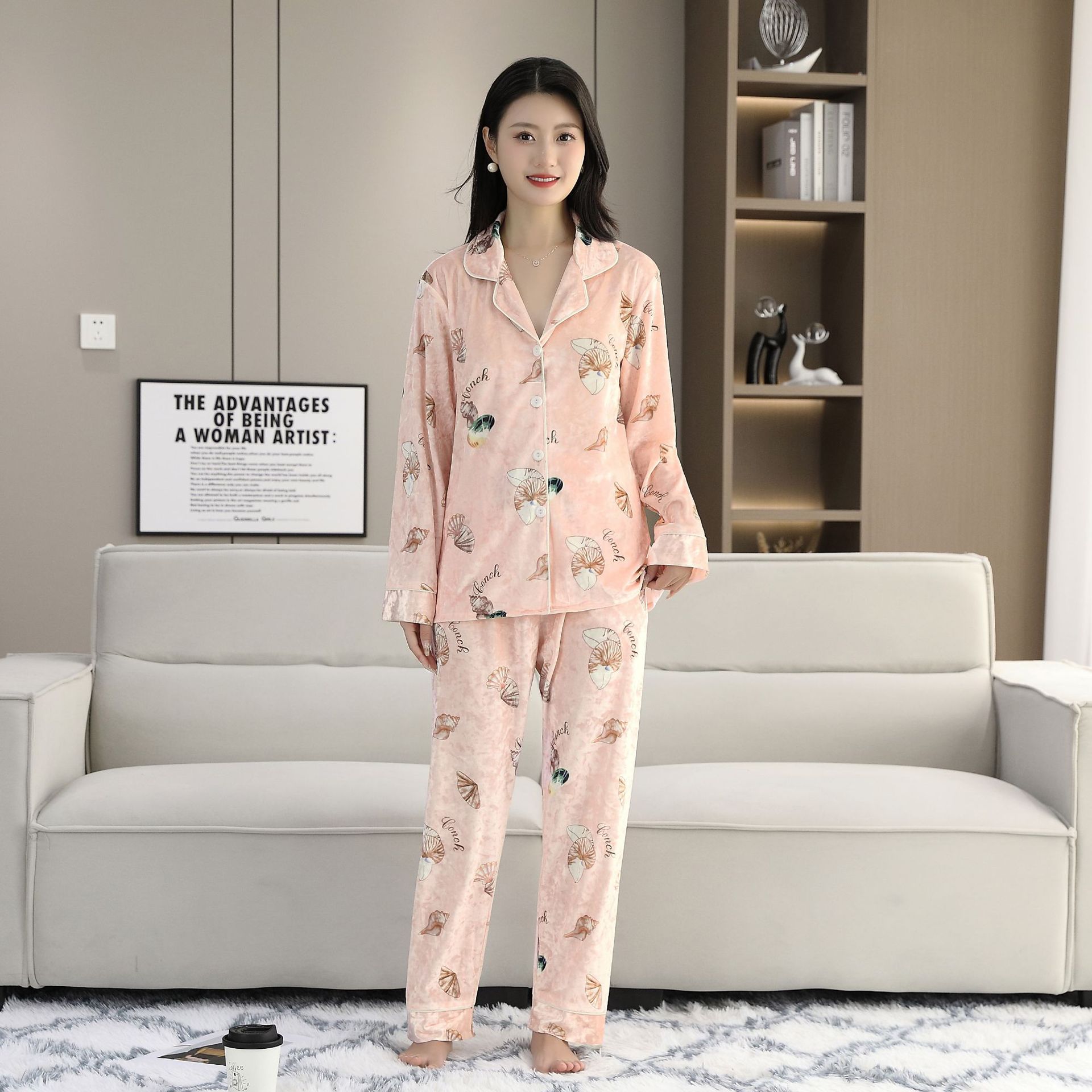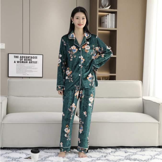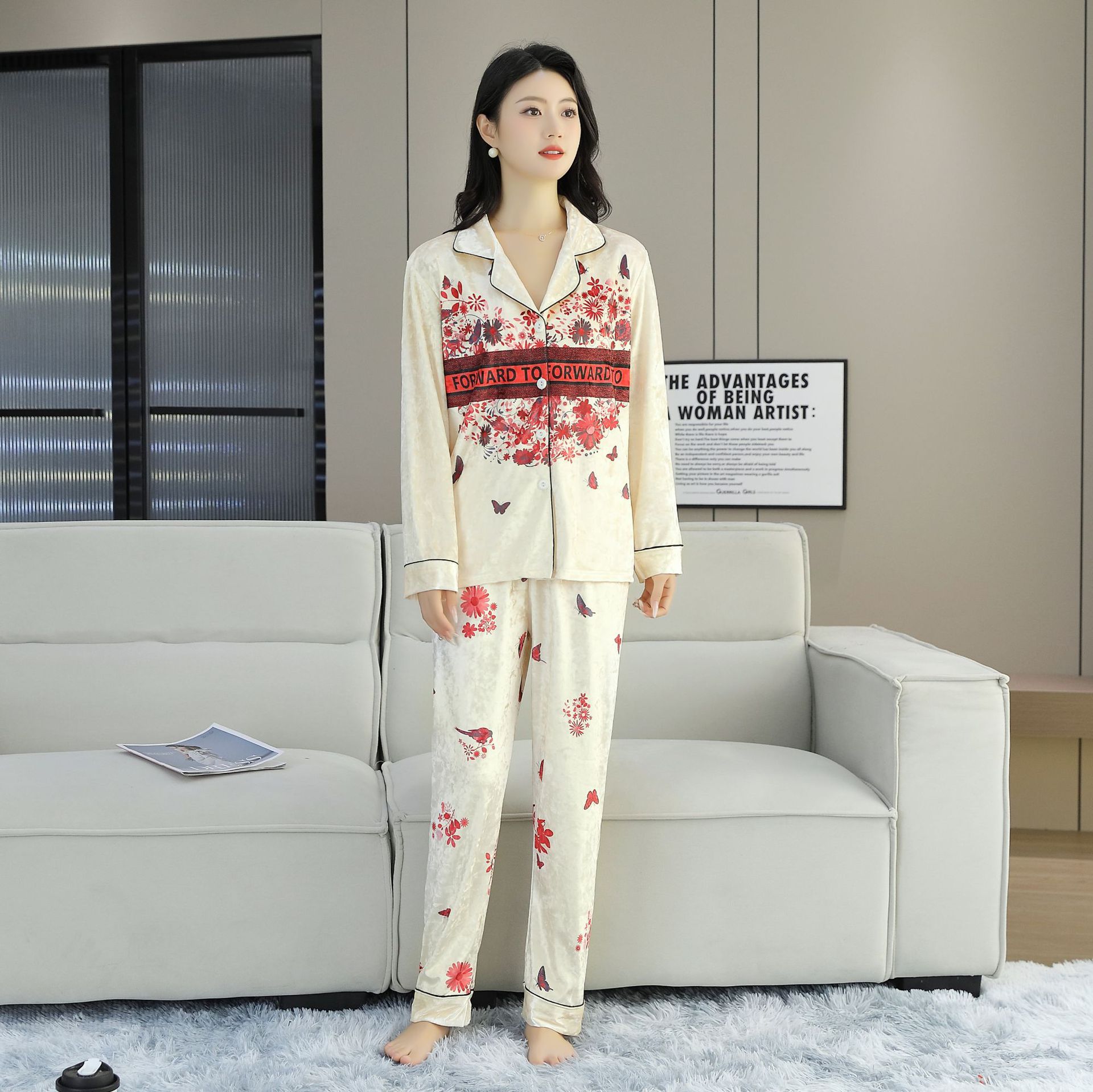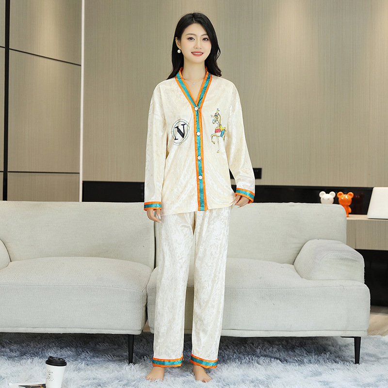 여성용 골드 벨벳 잠옷 가을 겨울 긴팔 투피스 세트 남통 홈웨어 골드 다이아몬드 벨벳 고급스러운 느낌 대형 사이즈 도매스토어 가기