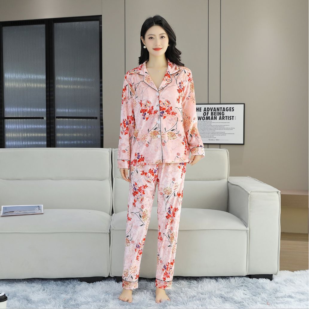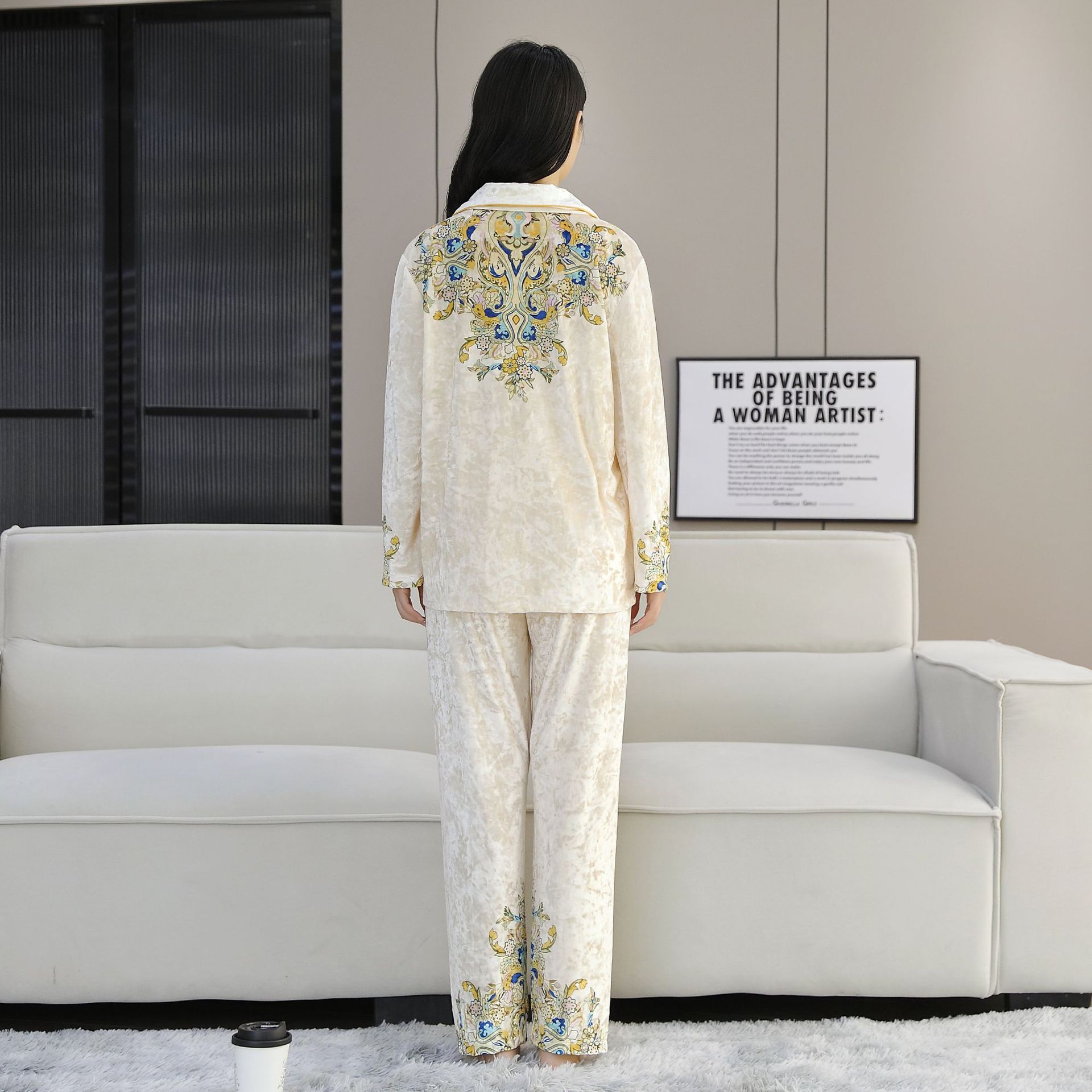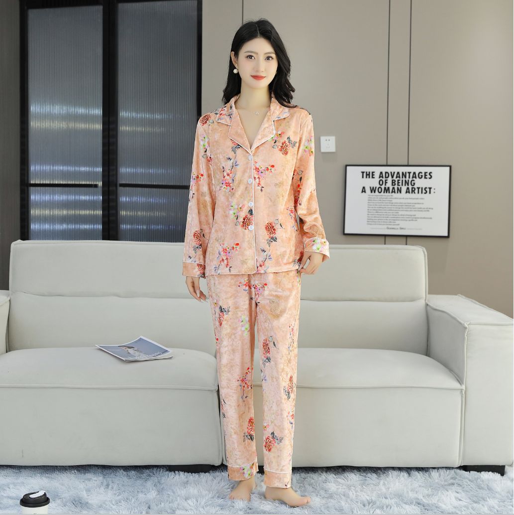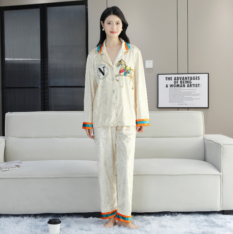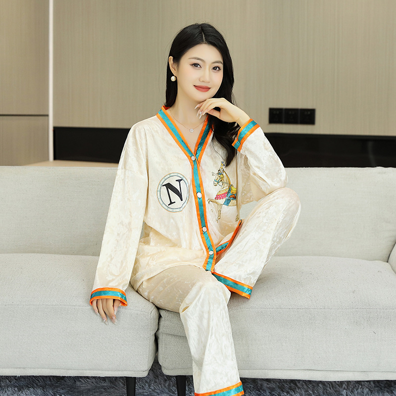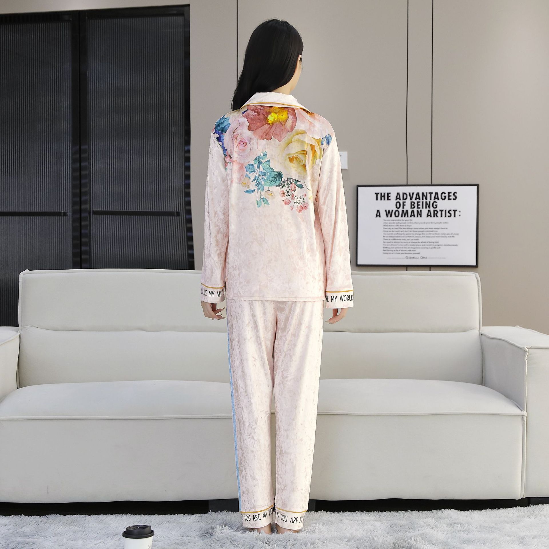 여성용 골드 벨벳 잠옷 가을 겨울 긴팔 투피스 세트 남통 홈웨어 골드 다이아몬드 벨벳 고급스러운 느낌 대형 사이즈 도매스토어 가기
