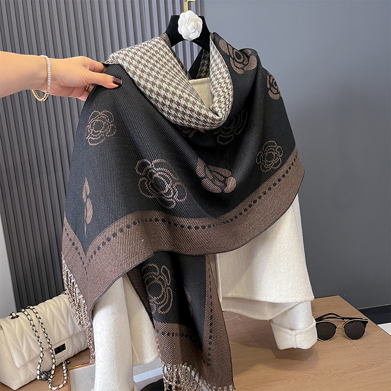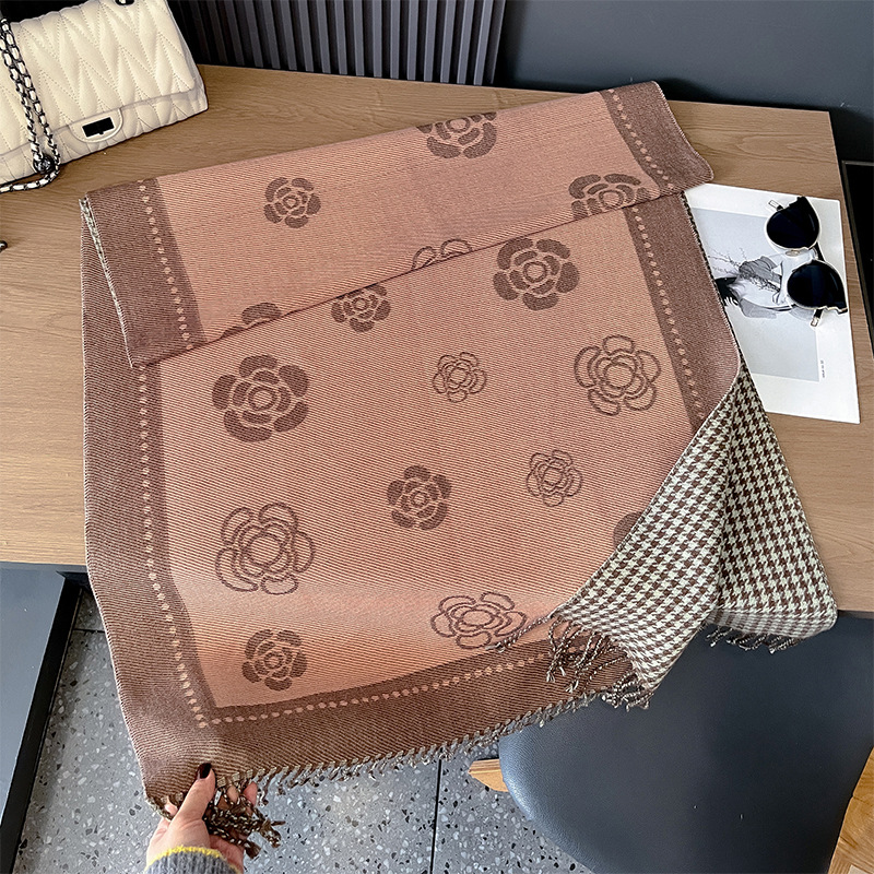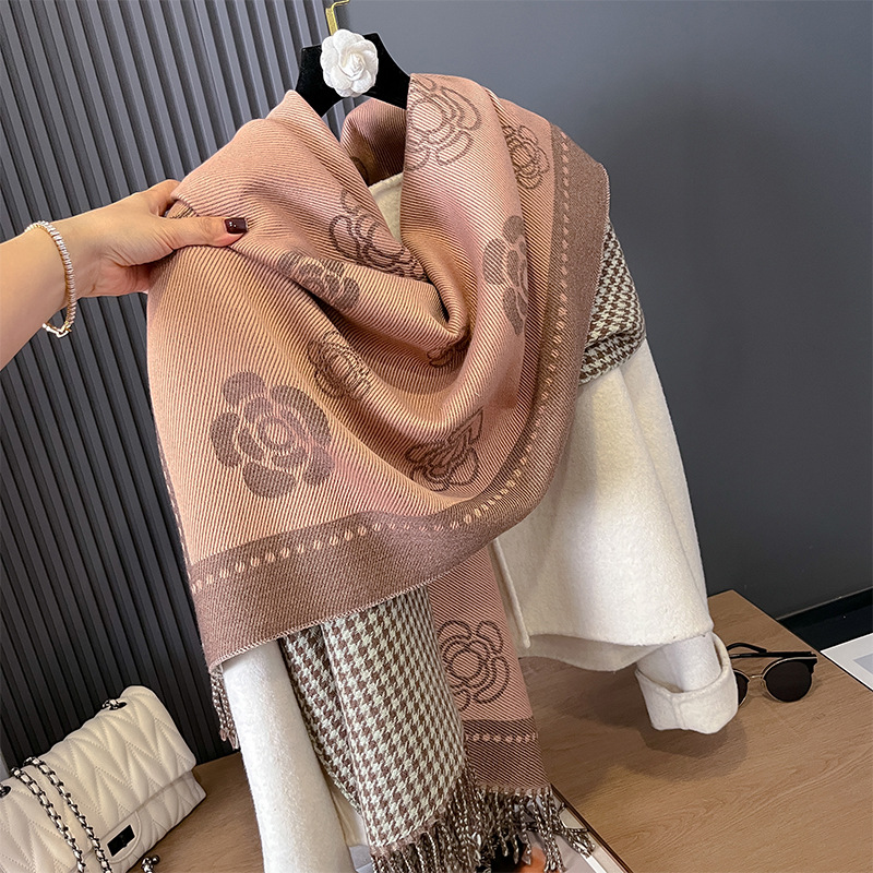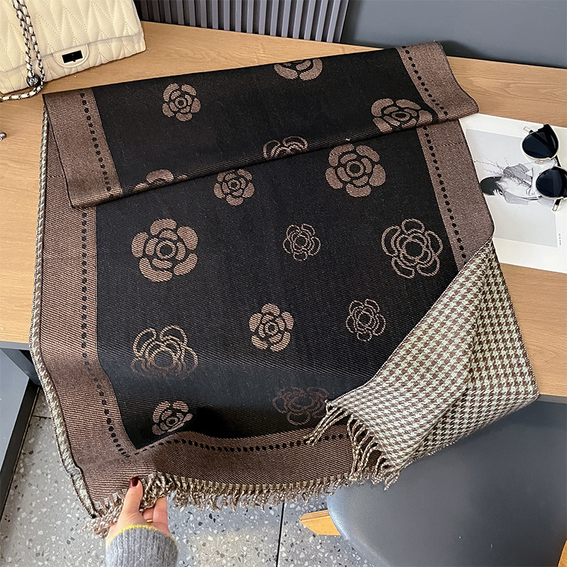 스카프 여성의 가을과 겨울 새로운 코어 스핀 원사 캐시미어 동백꽃 하운스 투스 양면 따뜻한 목도리 올 매치 스카프스토어 가기