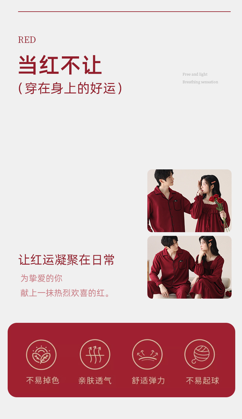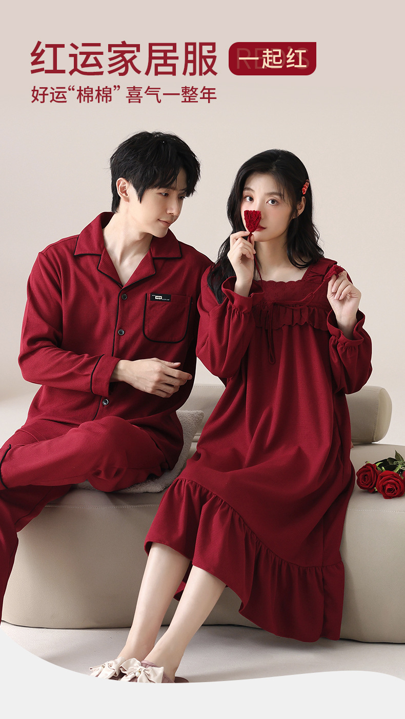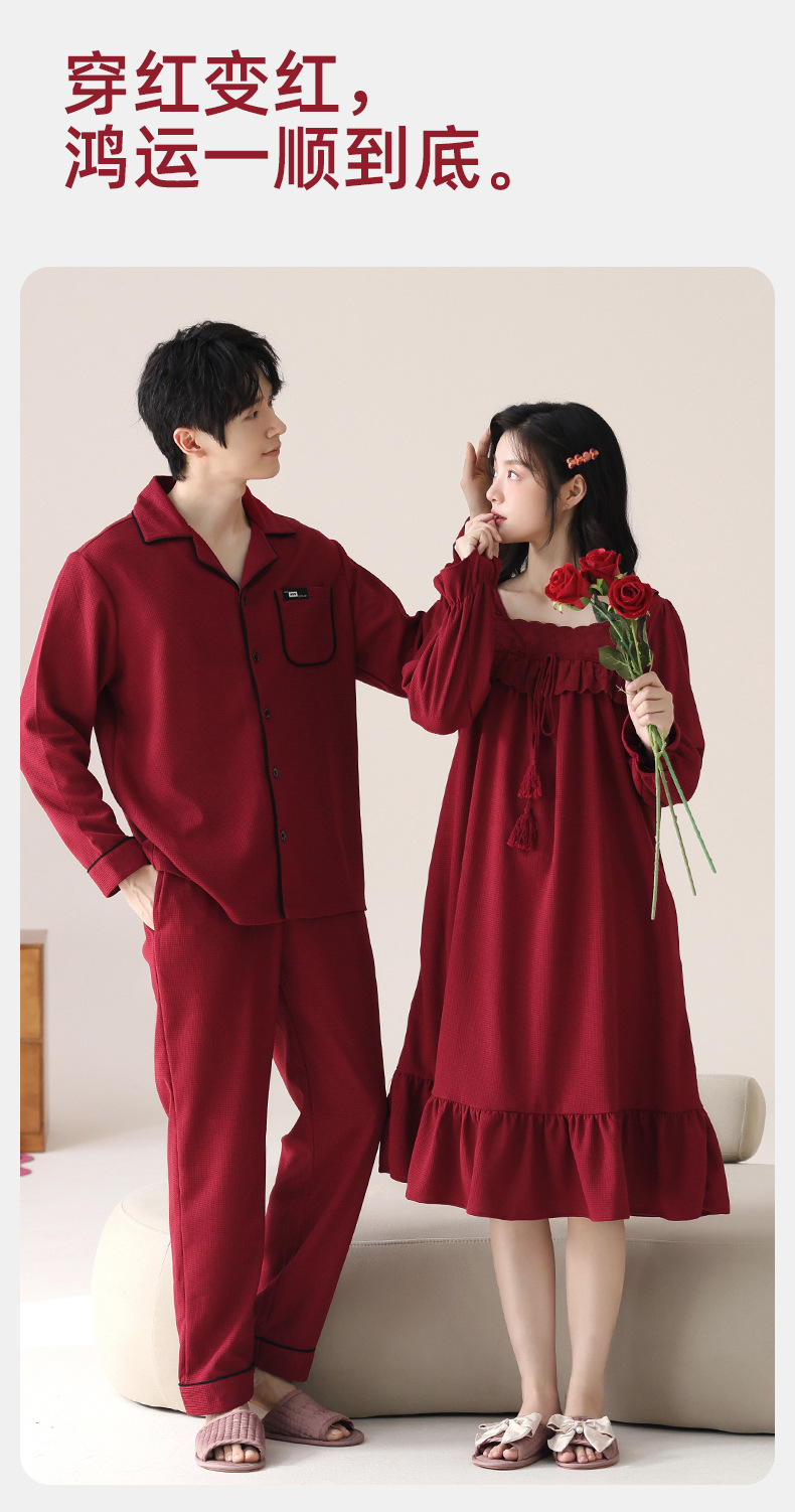 커플의 붉은 잠옷 봄과 가을 순면 긴 소매 잠옷 여성 결혼식 신혼 가족 년 홈 의류 남성 세트