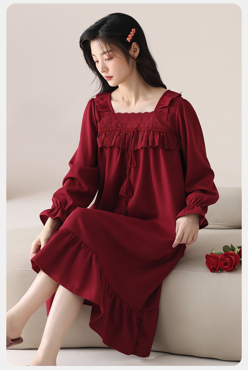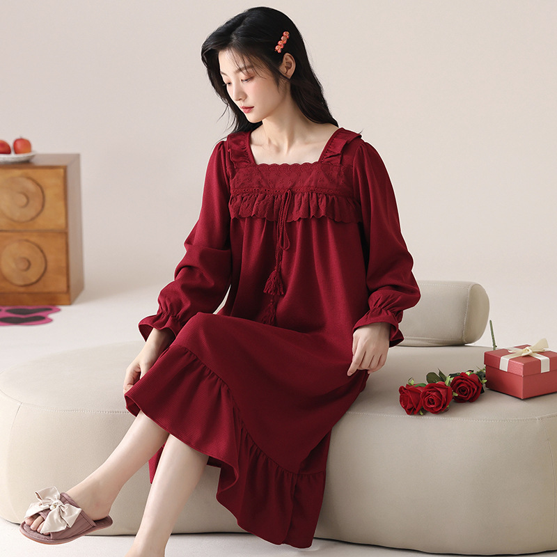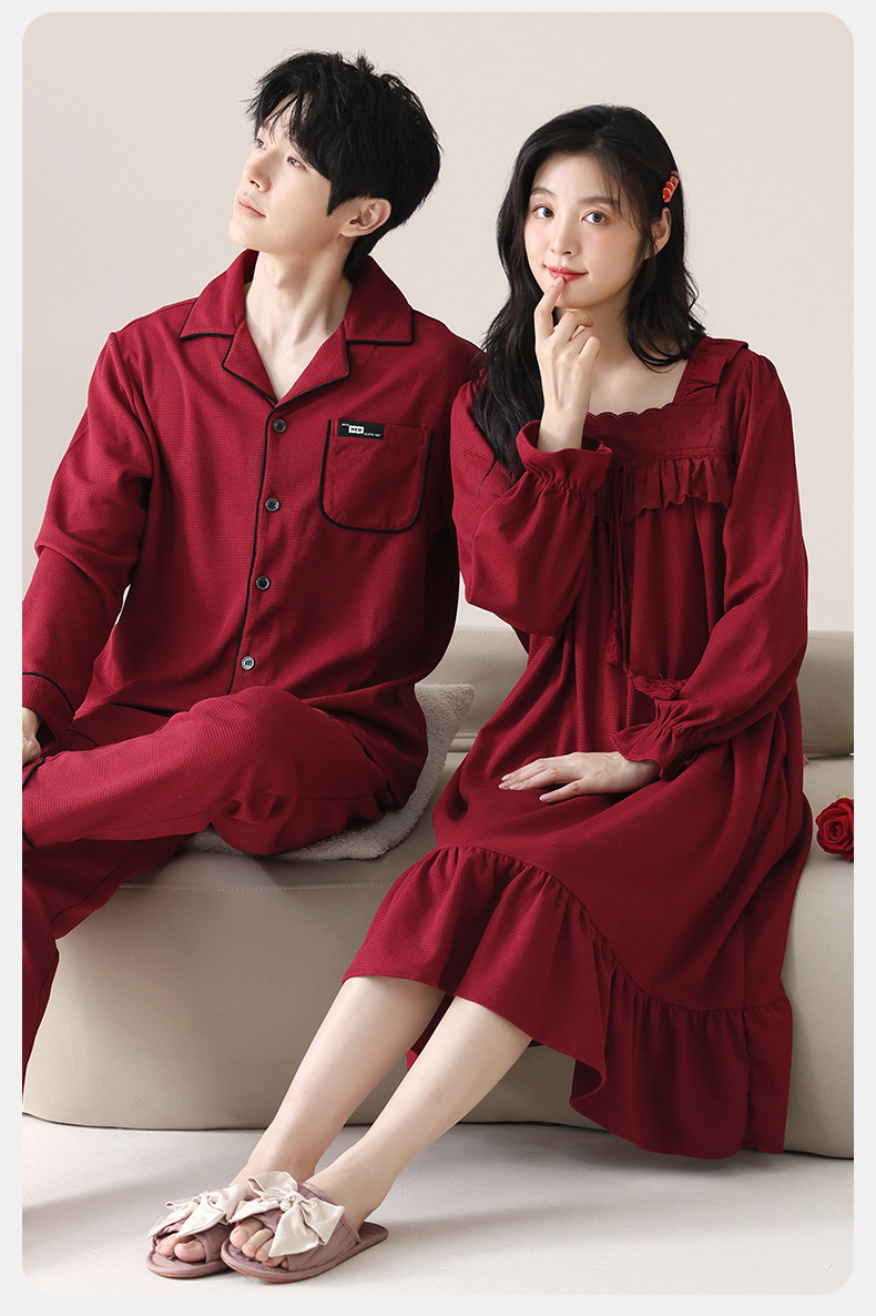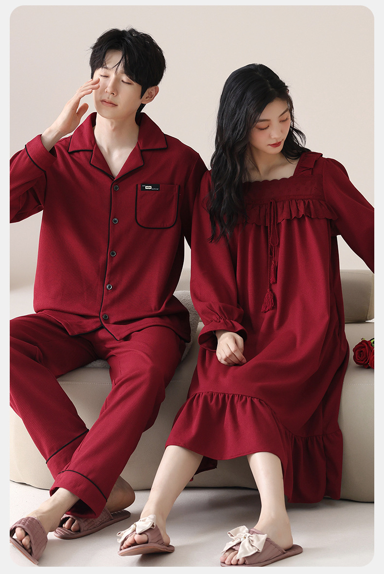 커플의 붉은 잠옷 봄과 가을 순면 긴 소매 잠옷 여성 결혼식 신혼 가족 년 홈 의류 남성 세트