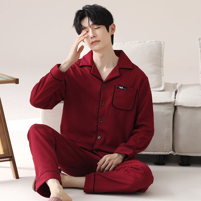 커플의 붉은 잠옷 봄과 가을 순면 긴 소매 잠옷 여성 결혼식 신혼 가족 년 홈 의류 남성 세트스토어 가기