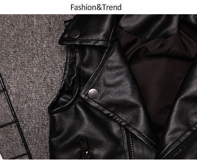남학생 조끼 남성용 외모 조끼 한국 어린이 의류 어린이 PU 가죽 외부 튜브 봄과 가을 한국 오토바이 가죽 의류