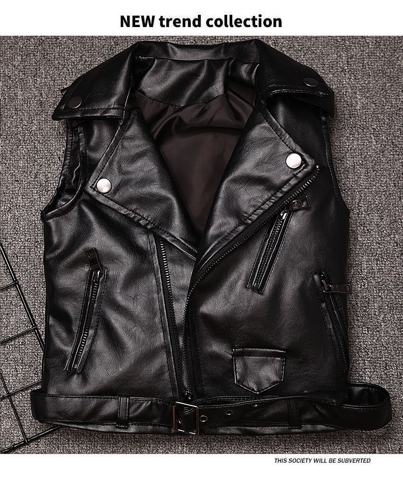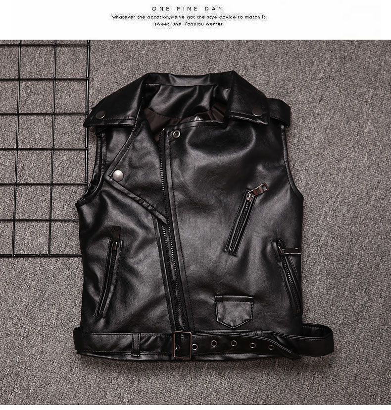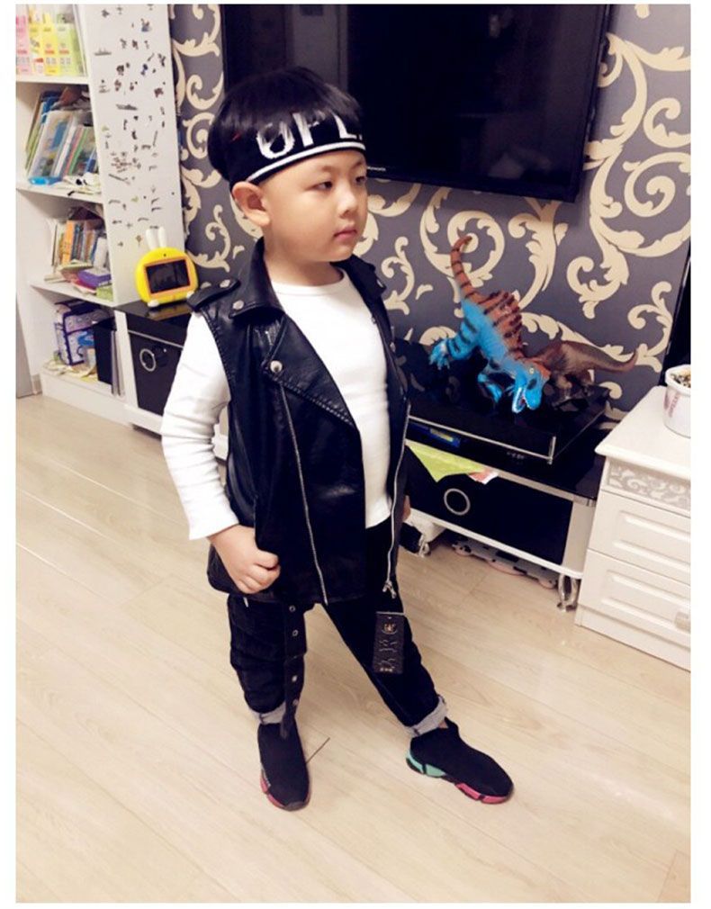 남학생 조끼 남성용 외모 조끼 한국 어린이 의류 어린이 PU 가죽 외부 튜브 봄과 가을 한국 오토바이 가죽 의류스토어 가기