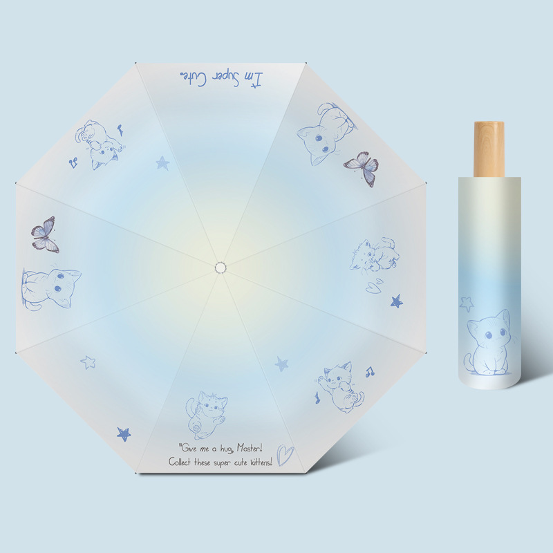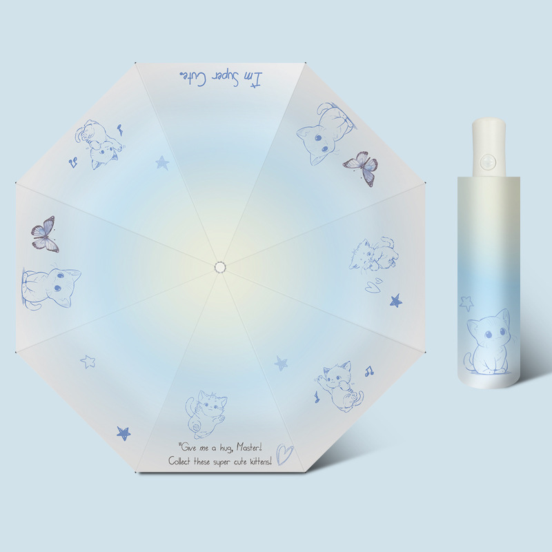 원래 디지털 인쇄 비닐 자동 태양 우산 70% off 태양 보호 파라솔 일본과 한국 스타일의 작은 신선한 태양 우산 신제품
