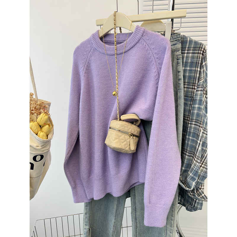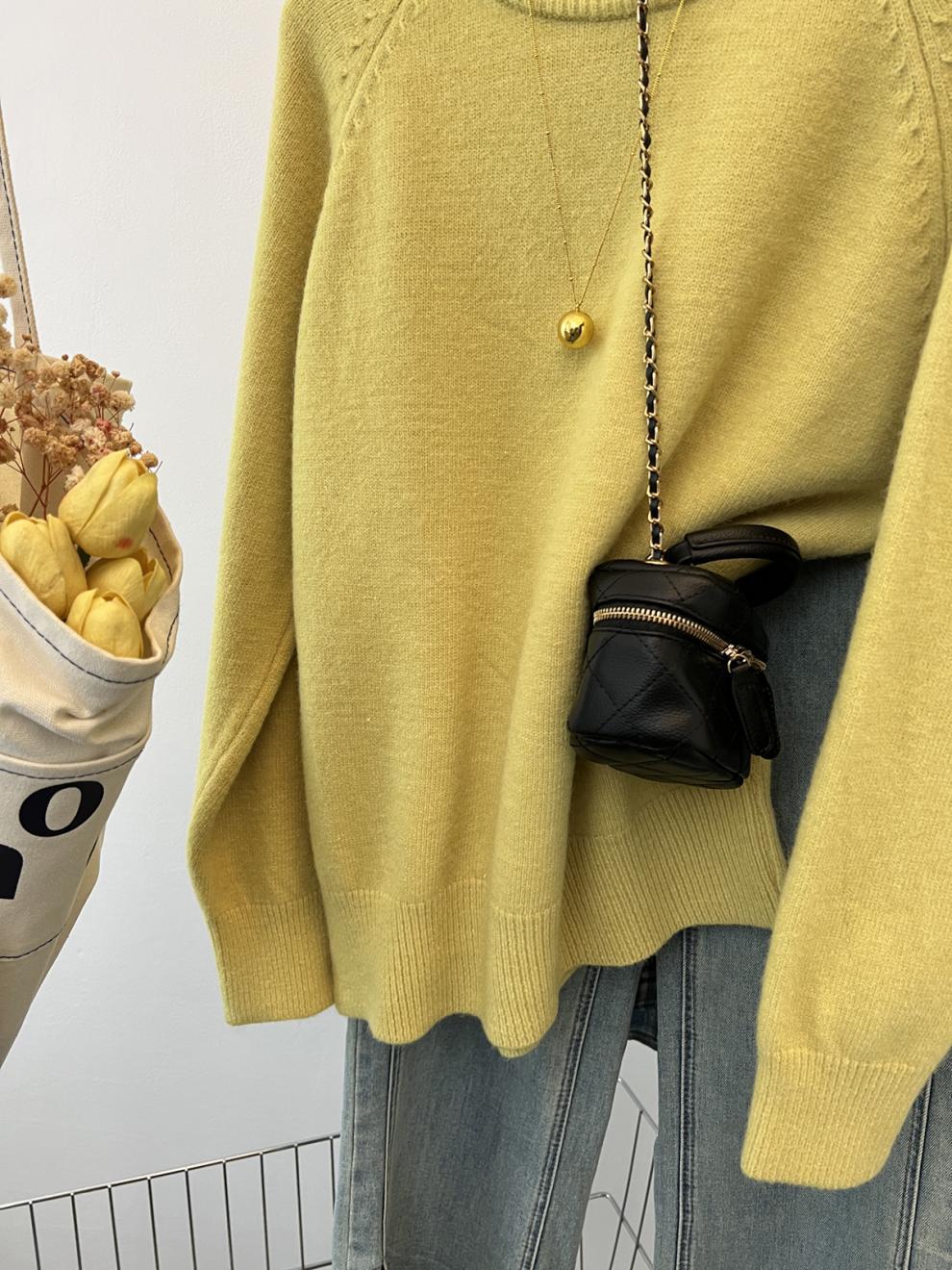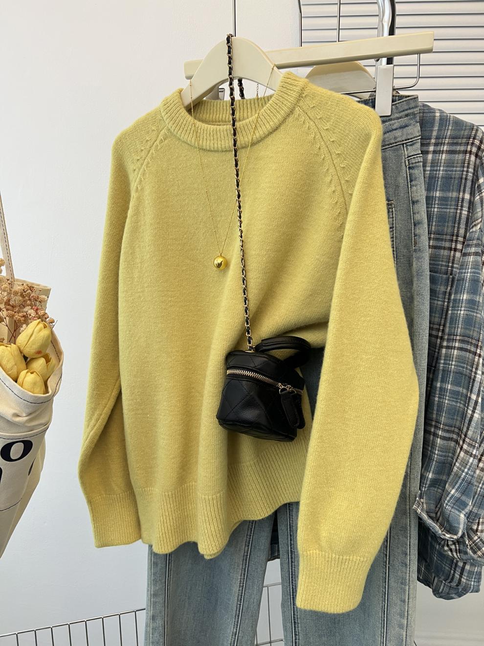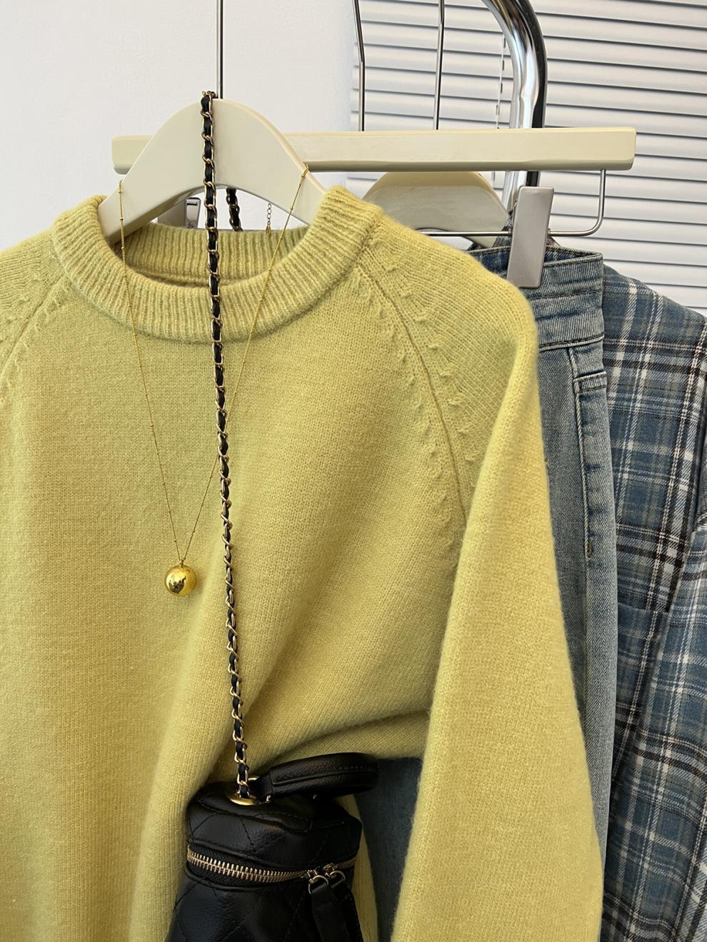 리얼 샷 ~ 쇼 화이트 머스타드 옐로우 너구리 벨벳 크루 넥 풀오버 스웨터 여성의 가을과 겨울 두꺼운 겨울 베이스 뜨개질